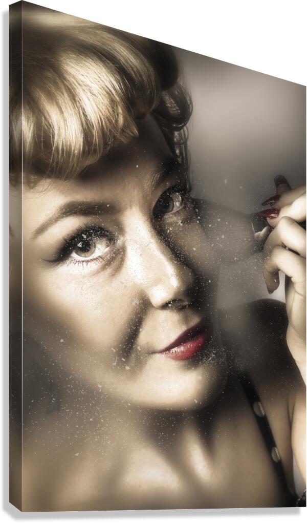ABOUT THIS ARTWORK: BEAUTY PIN-UP WOMAN APPLYING MAKEUP