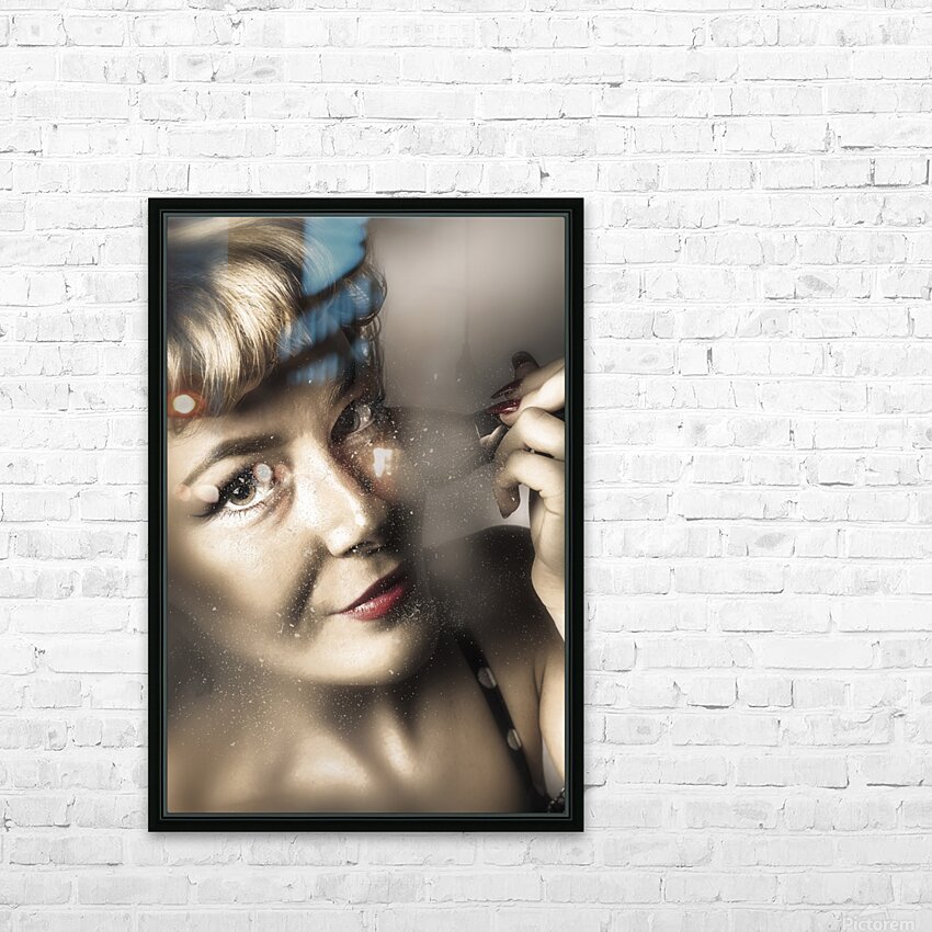 Beauty pin-up woman applying makeup Picture Frame Printing