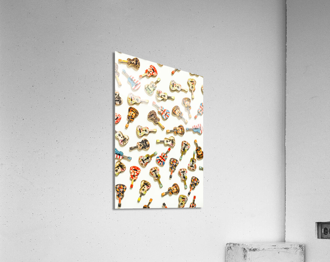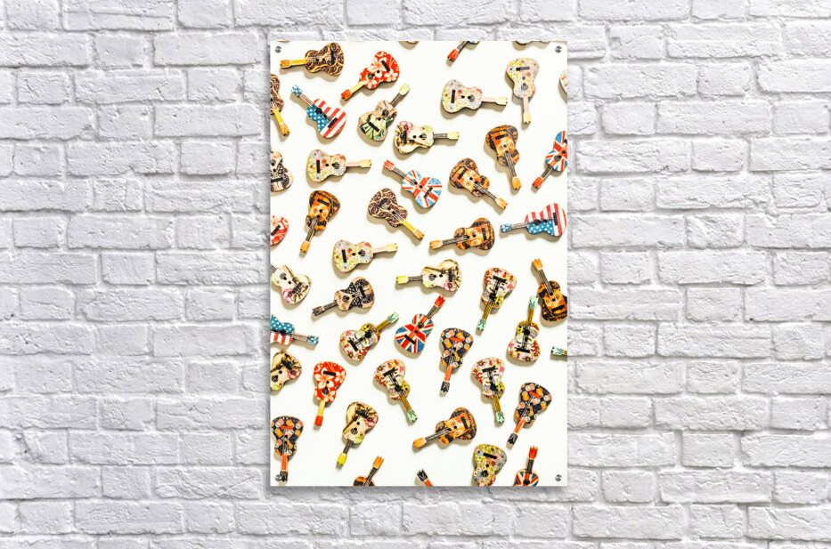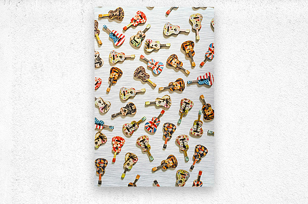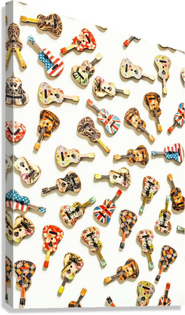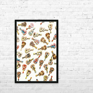 Creative still life art on a musical mix of many guitars in colourful classic styles. A visual play in music