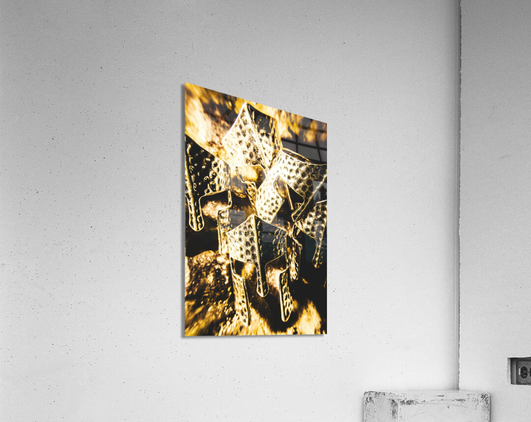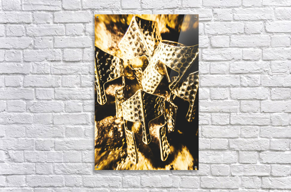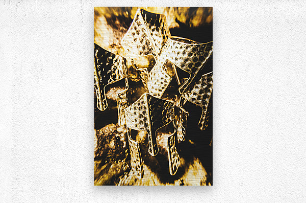 Artistic still life on a heap of military helmets in a armoury of conflict. Legion of history