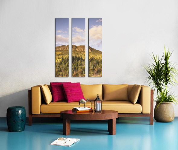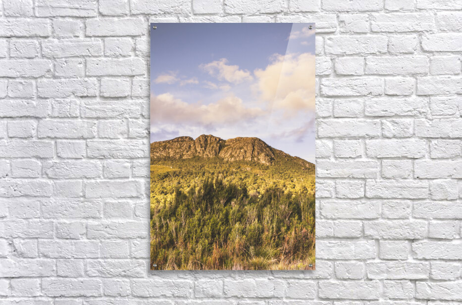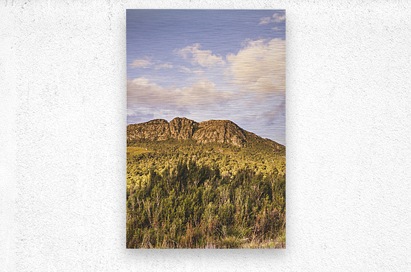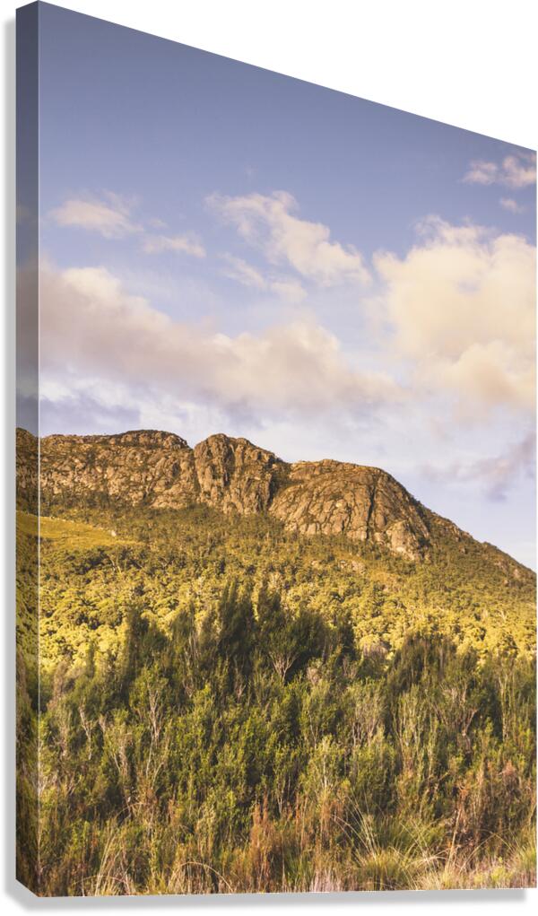Rocky mountain formation of beautiful bush before jagged peaks. Mount Ferrell Tullah Tasmania Australia