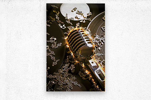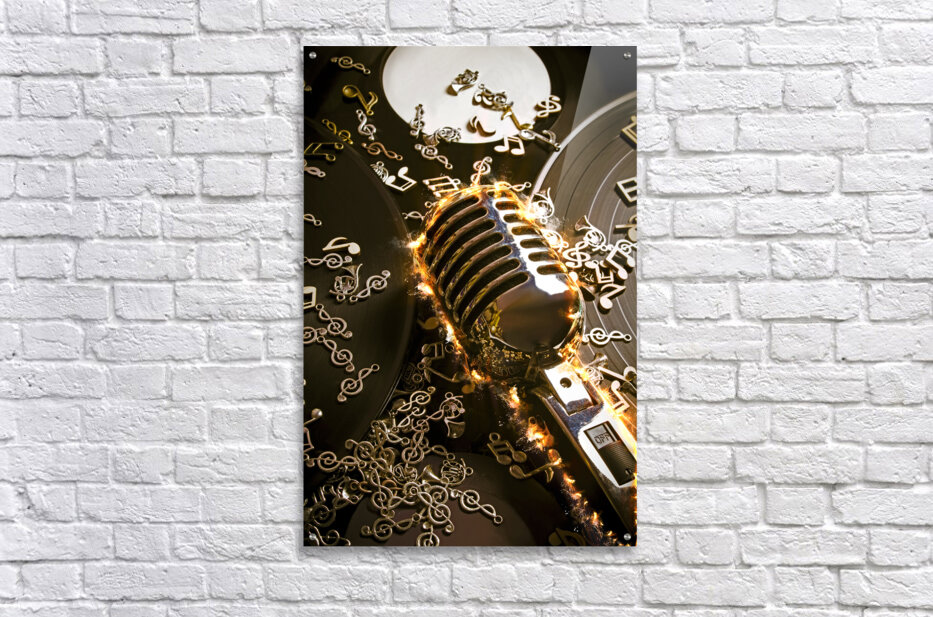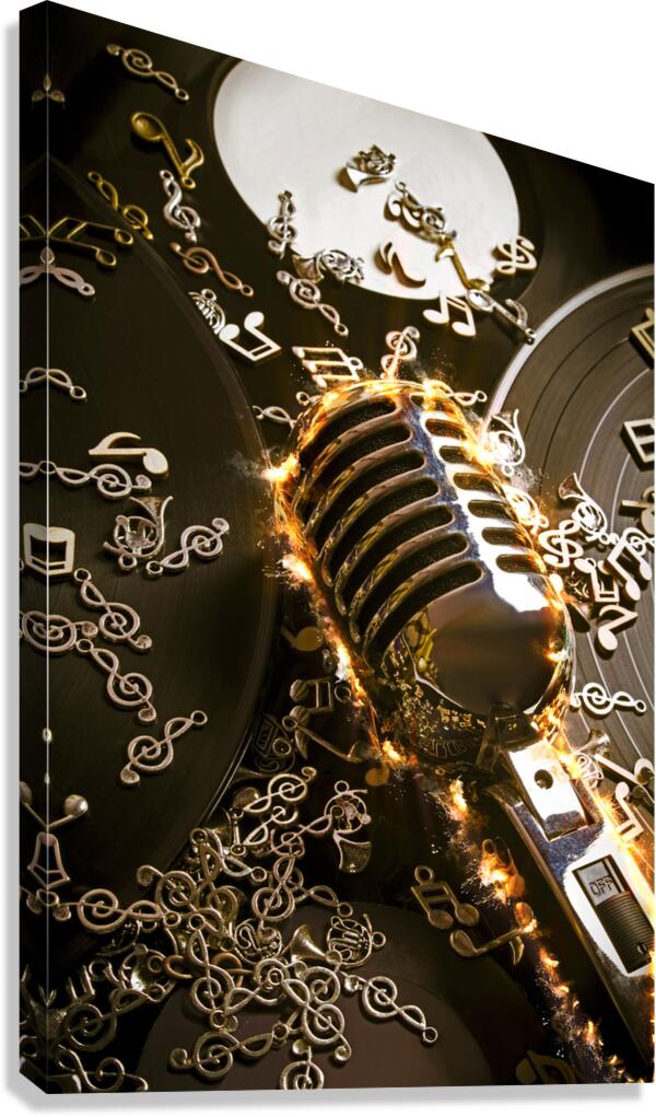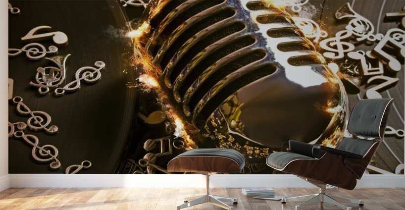 Musical fine art on a glowing composition of fire and music on recording vinyl