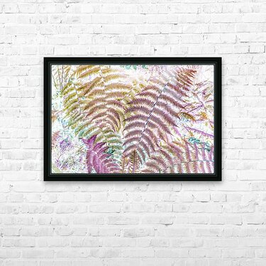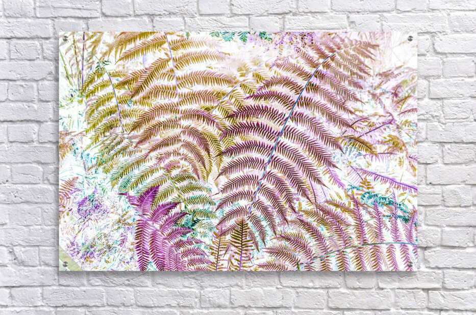 Colourful tropics showcased in exotic pop art with wild ferns in artistic inversism