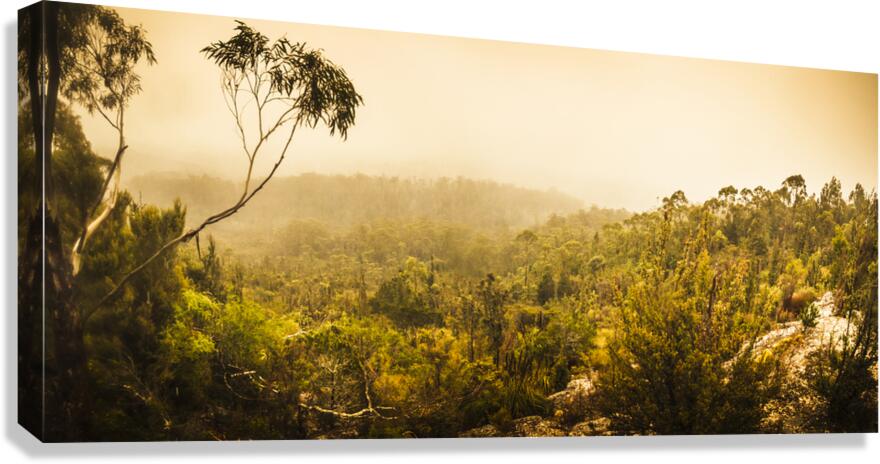 Old-fashioned scenic landscape photography on a moorland panorama of untouched buttongrass located in Upper Florentine Valley Southwest Tasmania. Australia