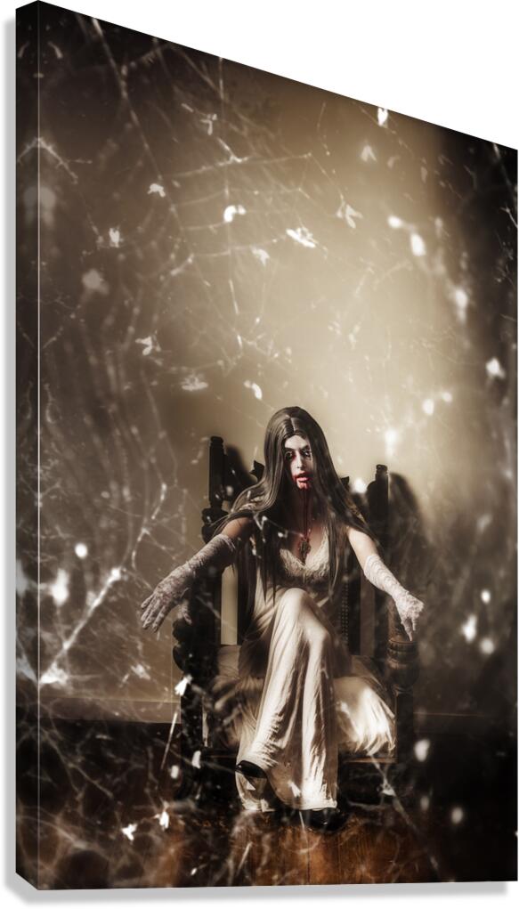 Get this artwork "Dark portrait of a demon woman in haunted house" in a framed print.