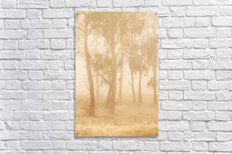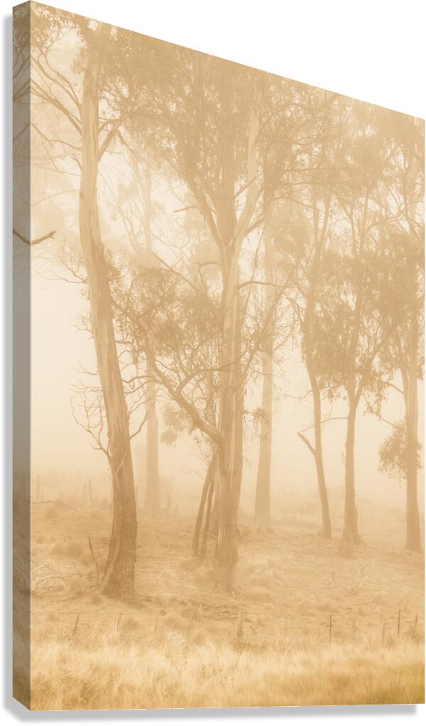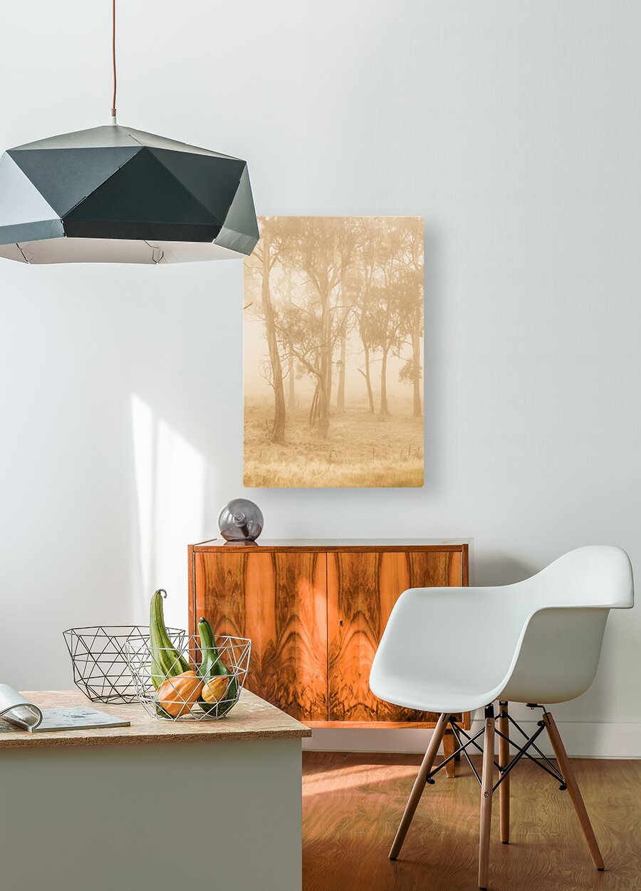 Quaint outdoor landscape on a mysterious woodland in tones of a golden sunrise. Taken Pelham Tasmania Australia