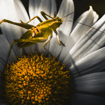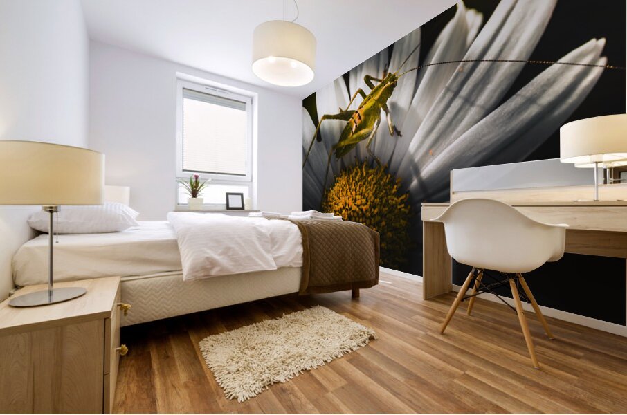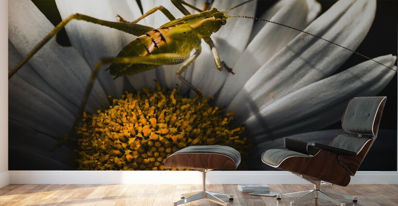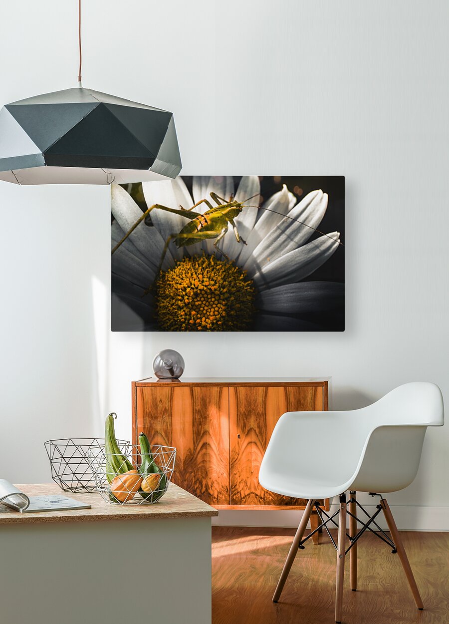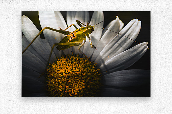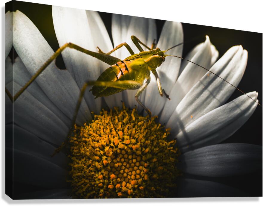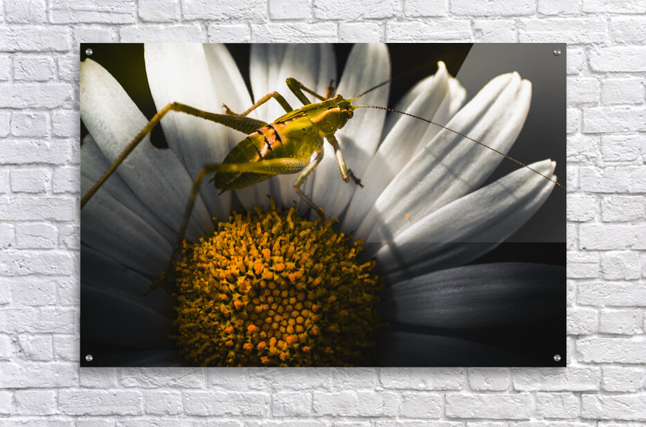 ABOUT THIS ARTWORK: AUSTRALIAN GRASSHOPPER ON FLOWERS. SPRING CONCEPT