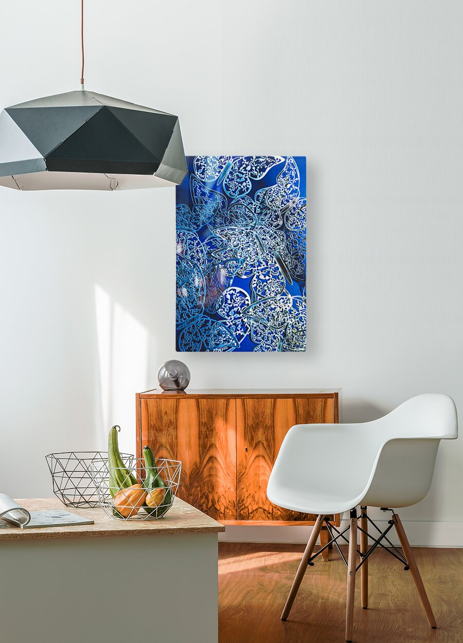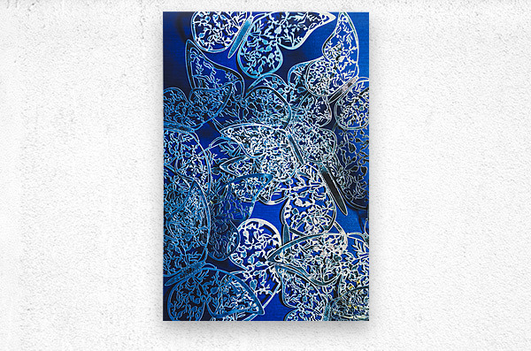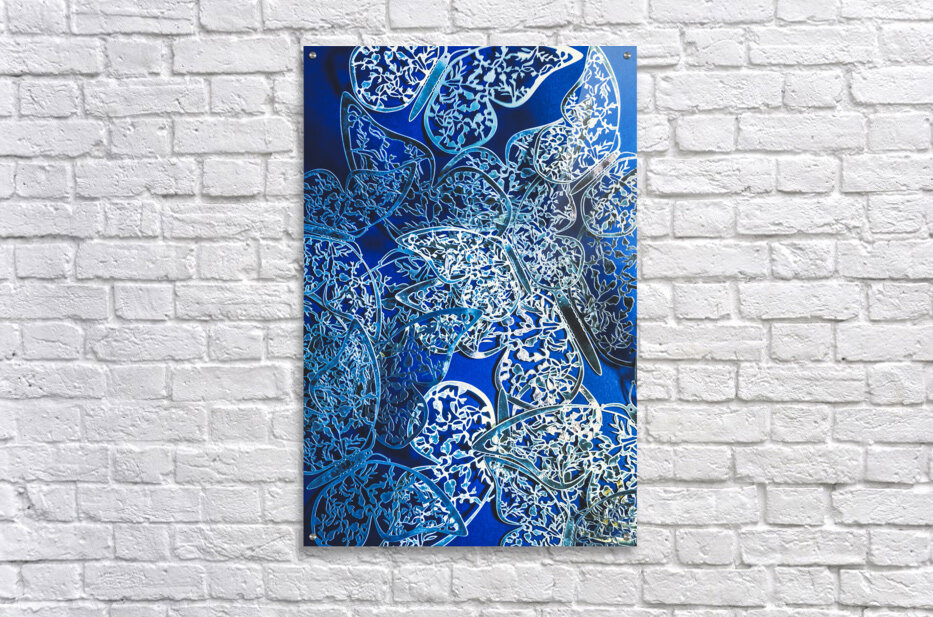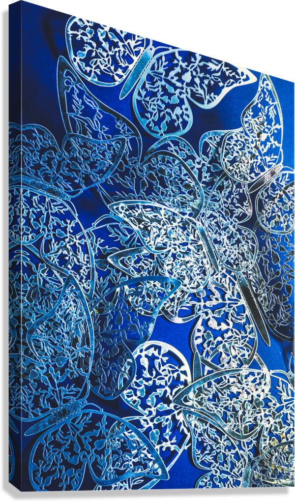 Fantasy fine art on a blue abstract of dreamy butterflies in silver elegance. What dreams may