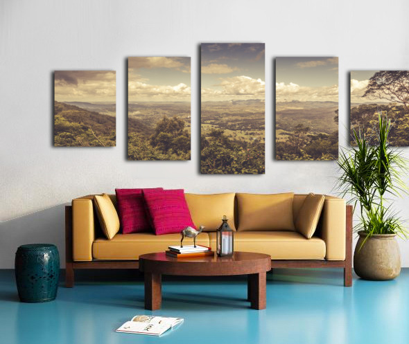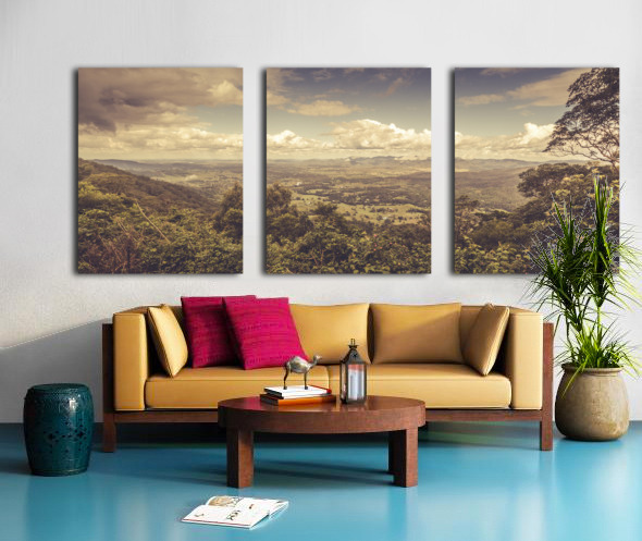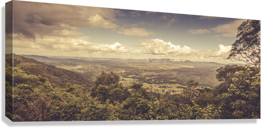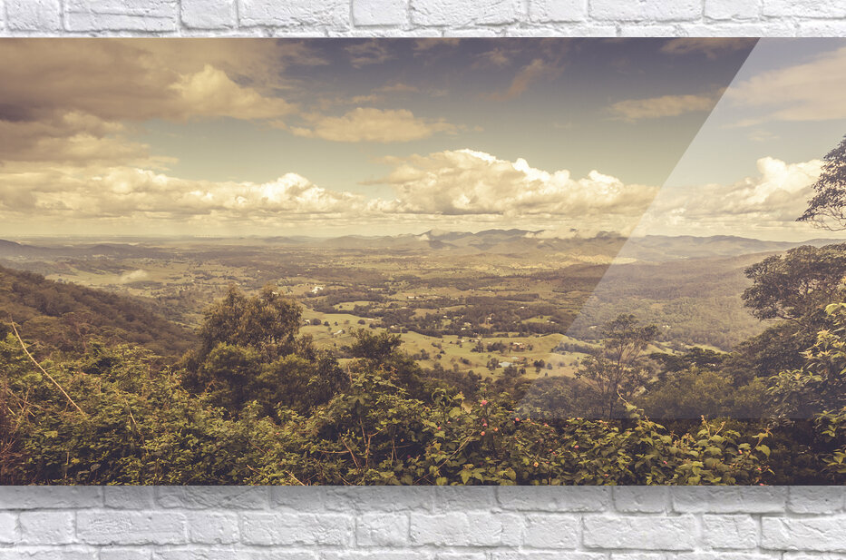Rustic Australian country panorama on a elevated vista view of Mount Glorious and Samford Valley. Taken from Mt Mee Queensland Australia