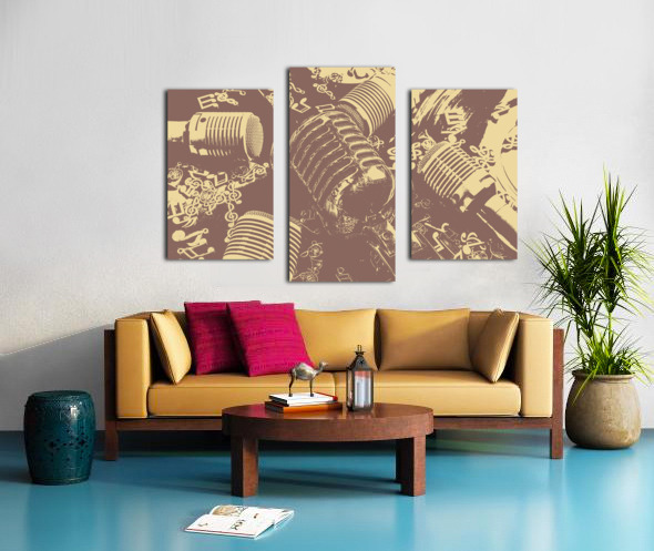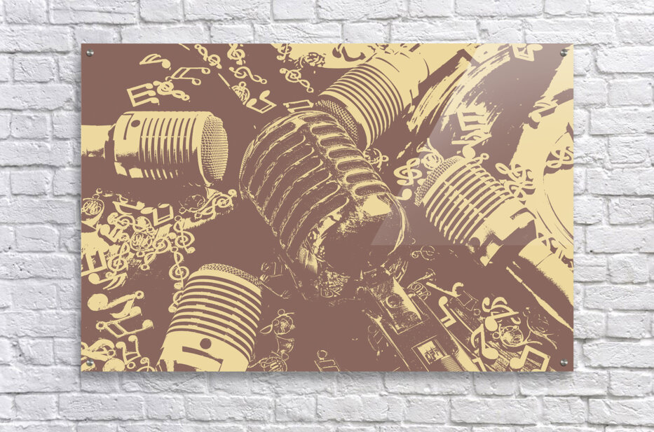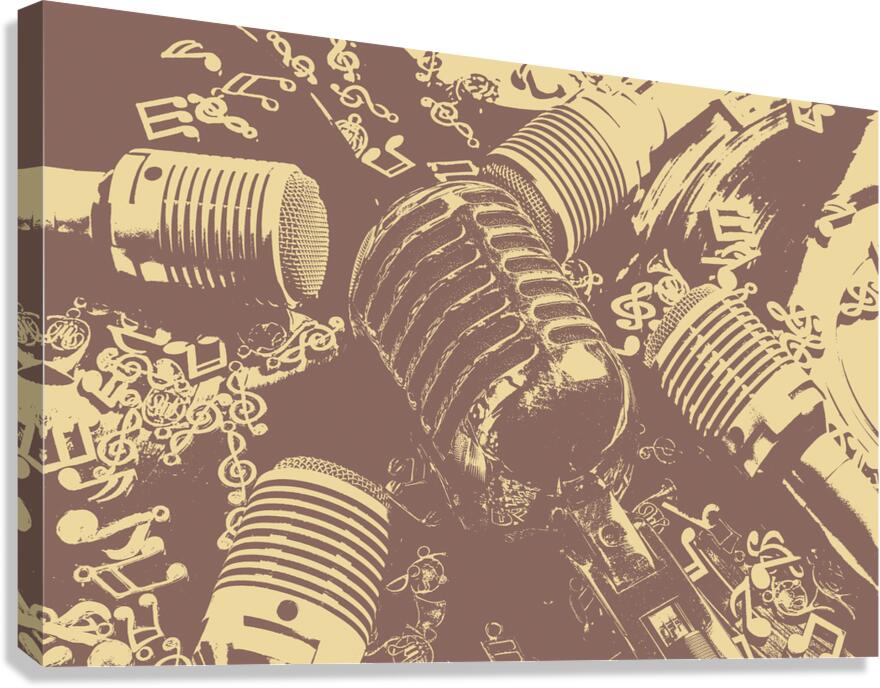 Antique audio art on a historic play in vocal nostalgia with mics and notes