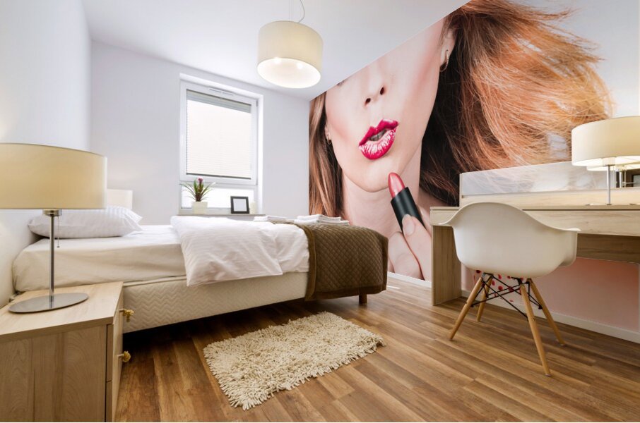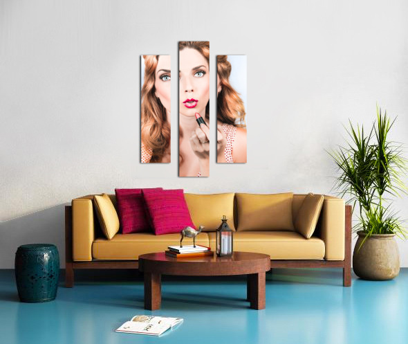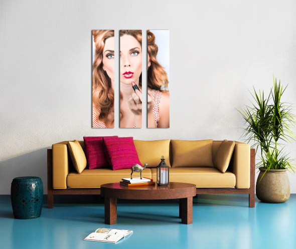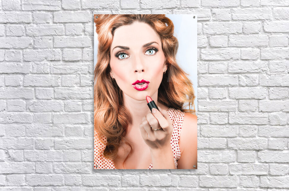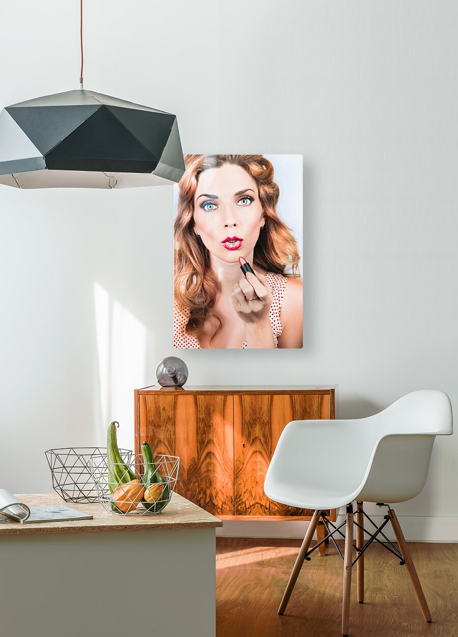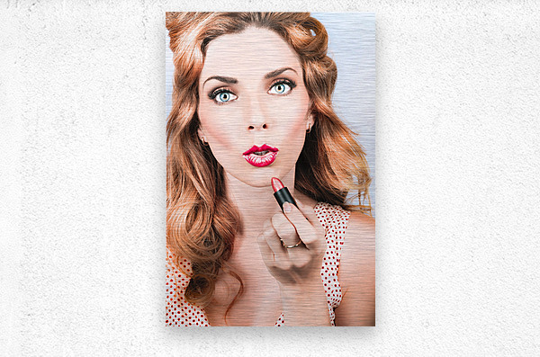 ABOUT THIS ARTWORK: RETRO BEAUTY PIN UP GIRL APPLYING LIPSTICK MAKEUP