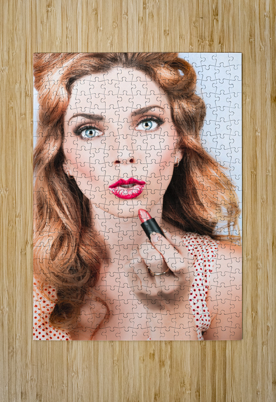 Retro beauty pin up girl applying lipstick makeup Jorgo Puzzle printing