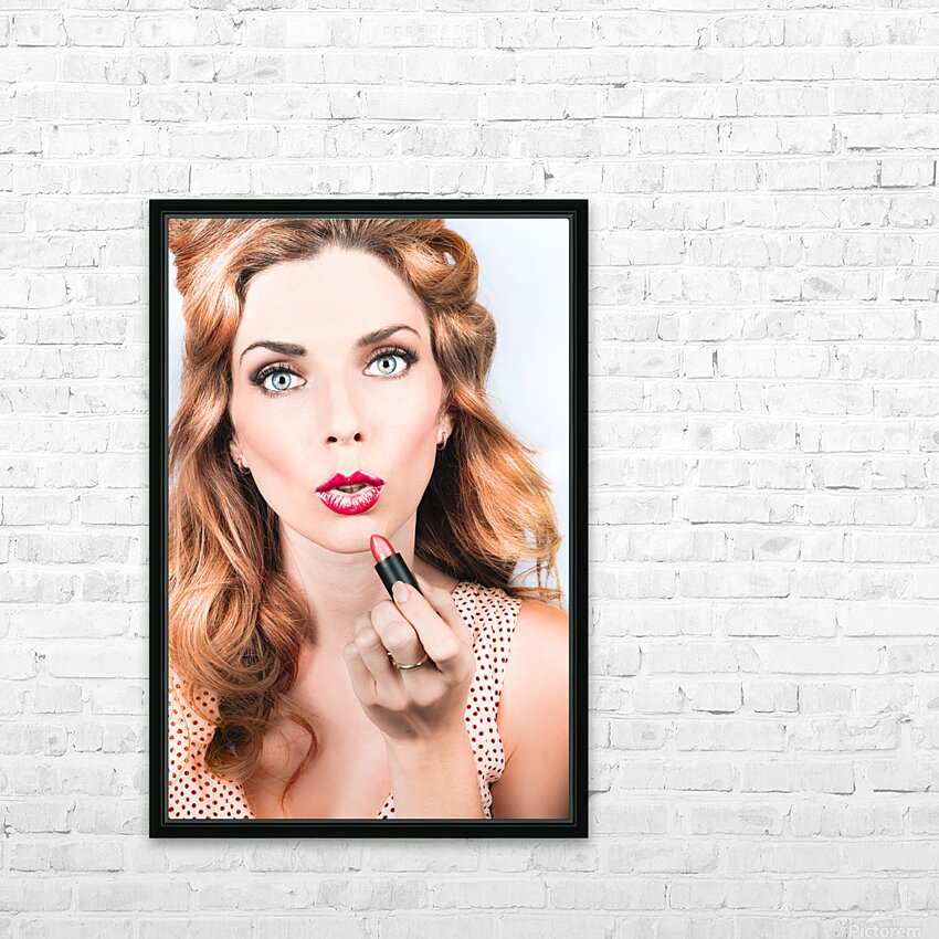 Retro beauty pin up girl applying lipstick makeup Picture Frame Printing