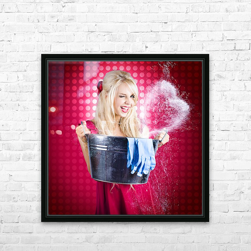 60s Retro Cleaning Lady With Metal Water Bucket Frame print