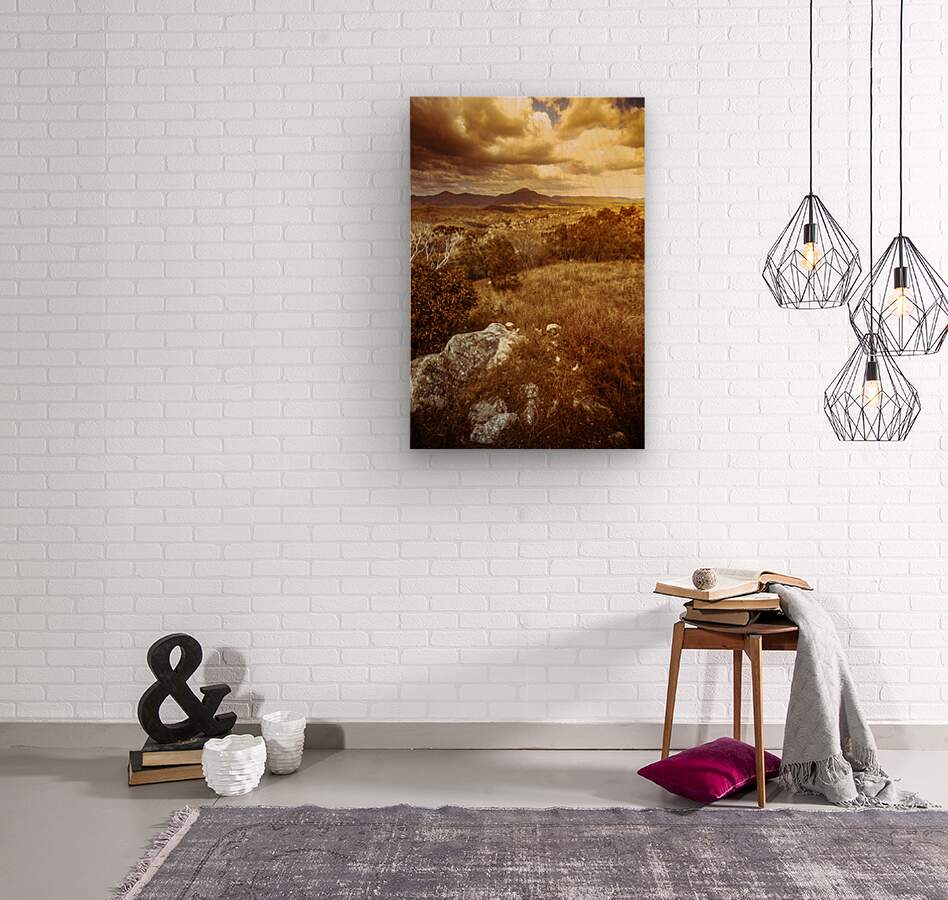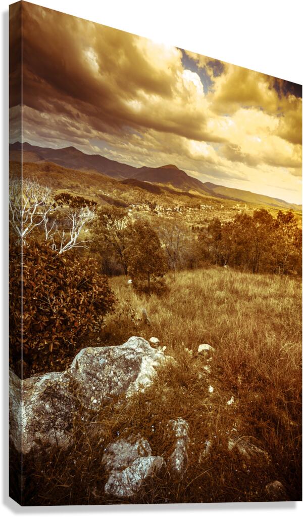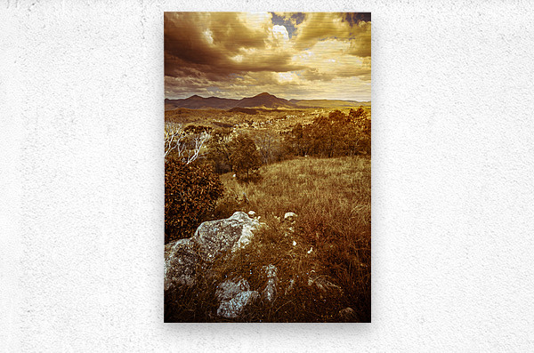 Moody change of tones and afternoon colour with storm front scenics above beautiful wild barren country. Mt Perry Queensland Australia