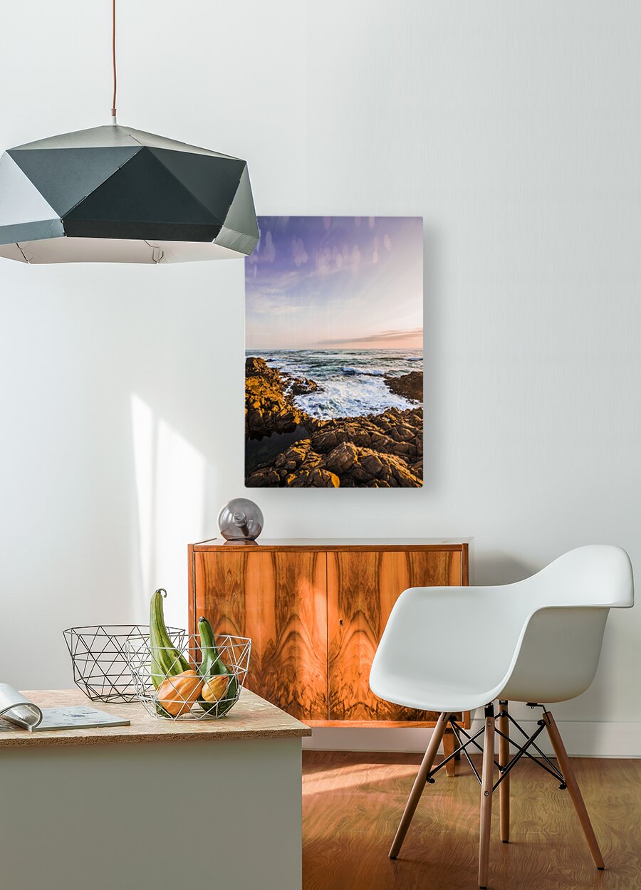 Harmonious vertical landscape on a wash of pastel seas in exotic tranquillity. Granville Harbour West Coast Tasmania Australia