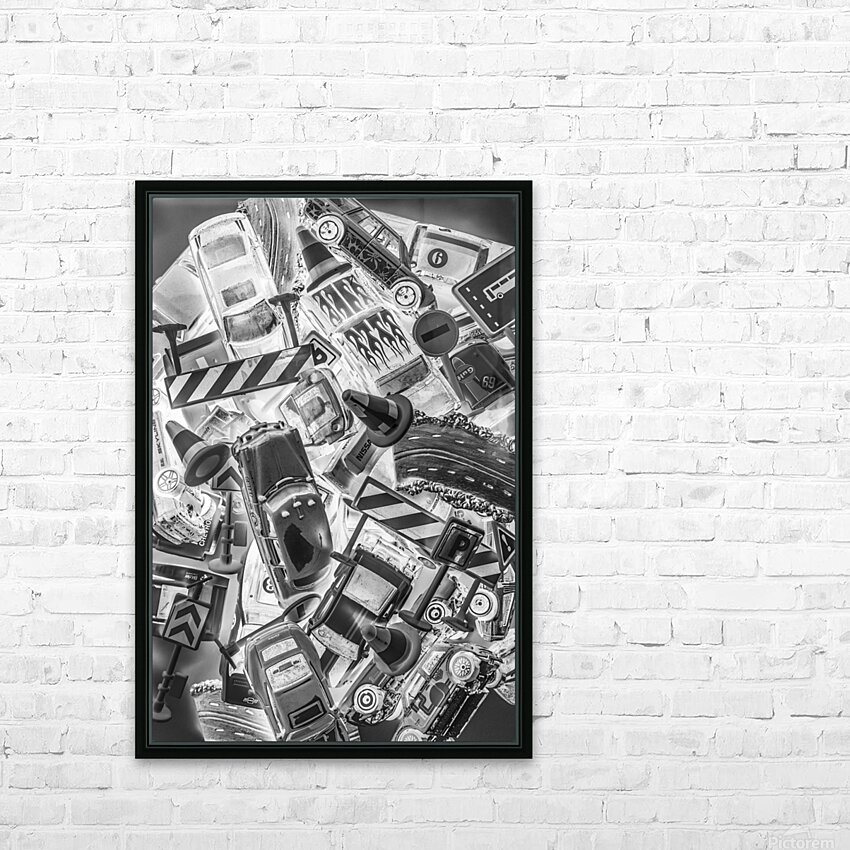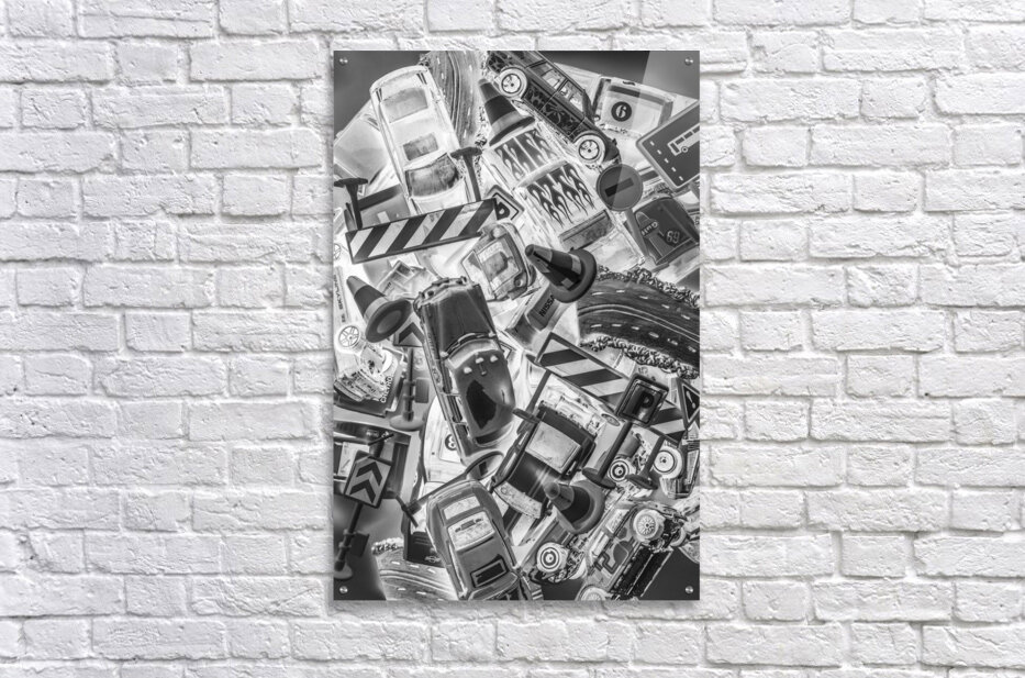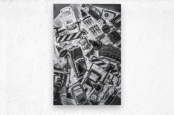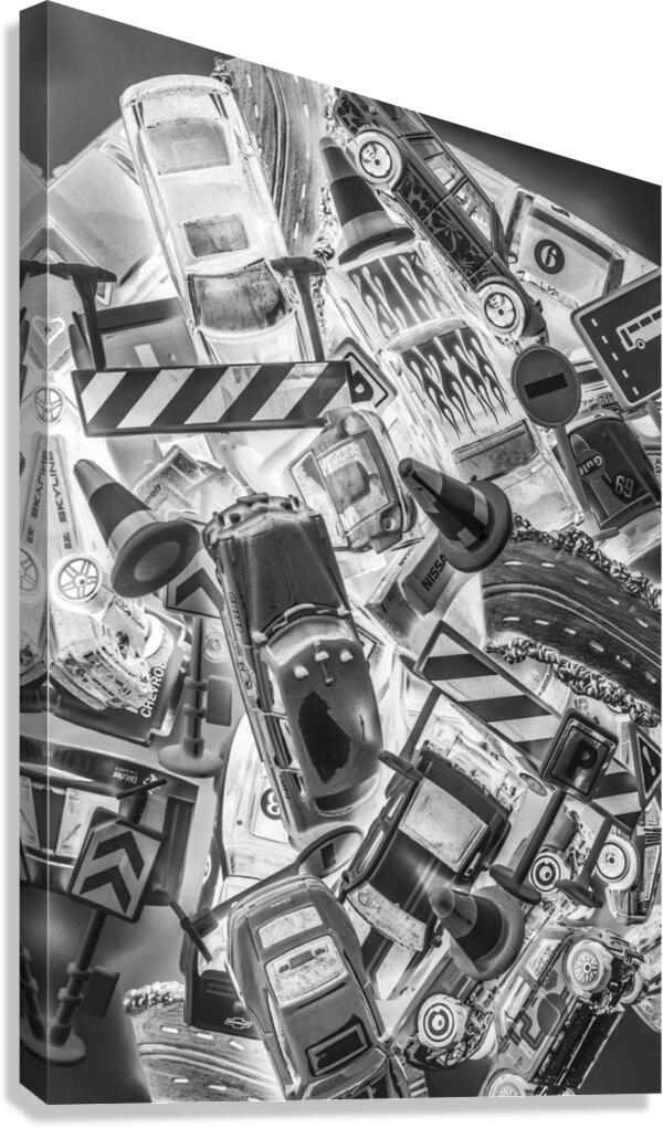 Street scene in imaginative abstract with roadway and cars in urban development jam