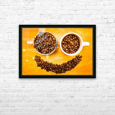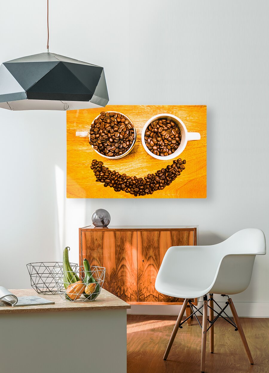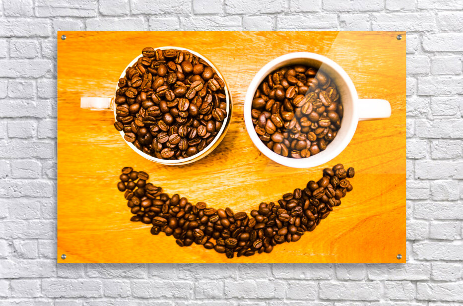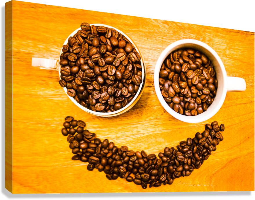 An expression in espresso smiles with funny faces made from coffee delight. Expresso