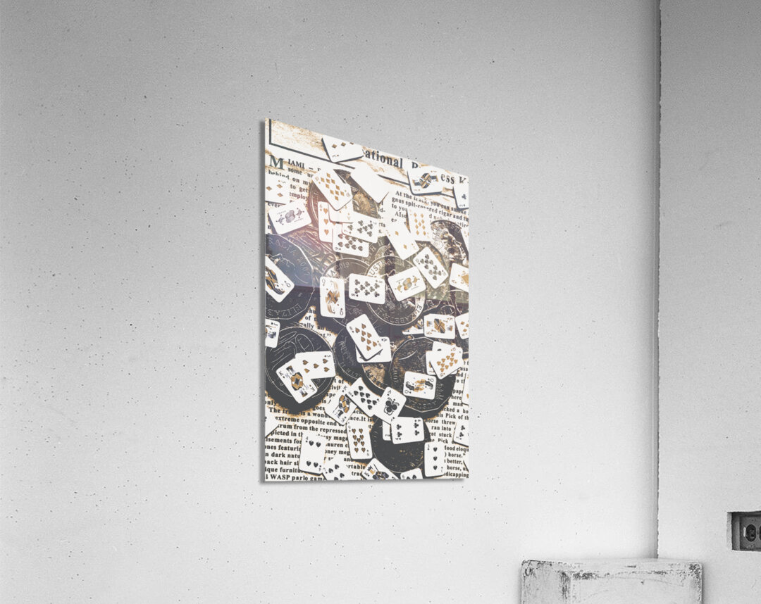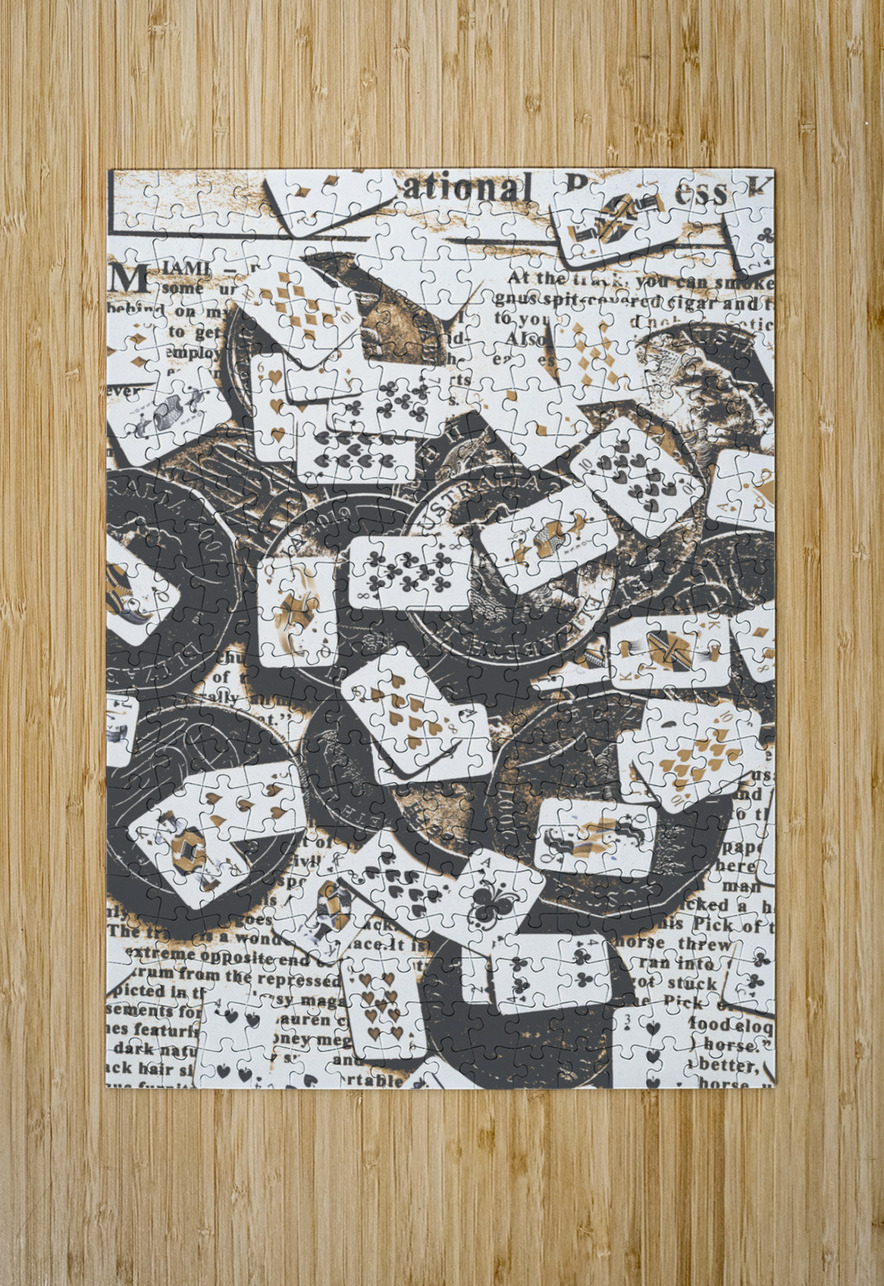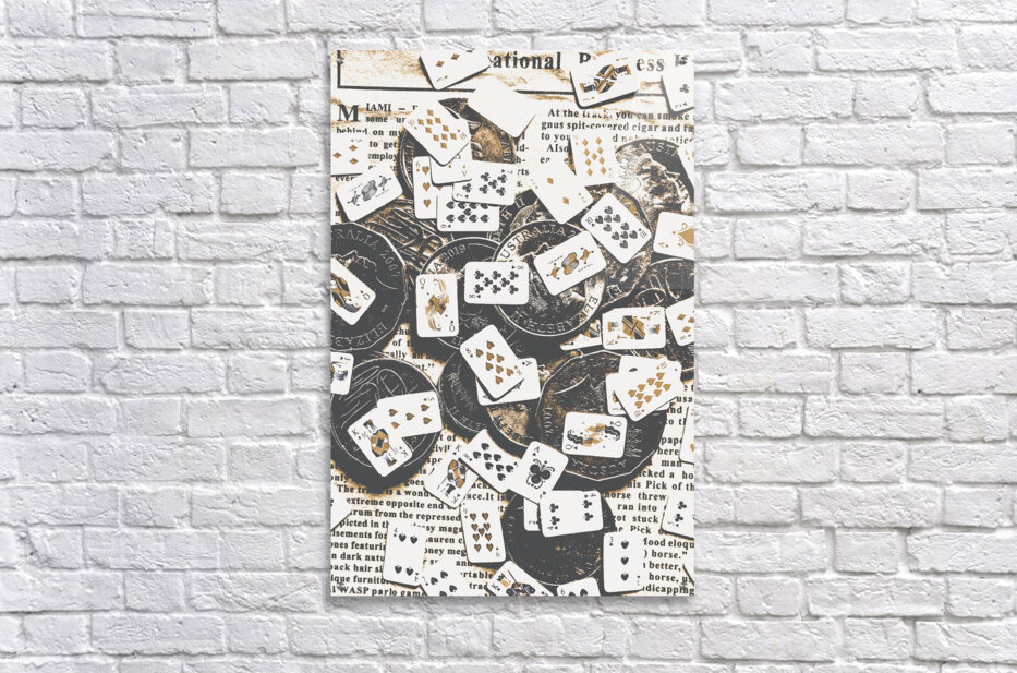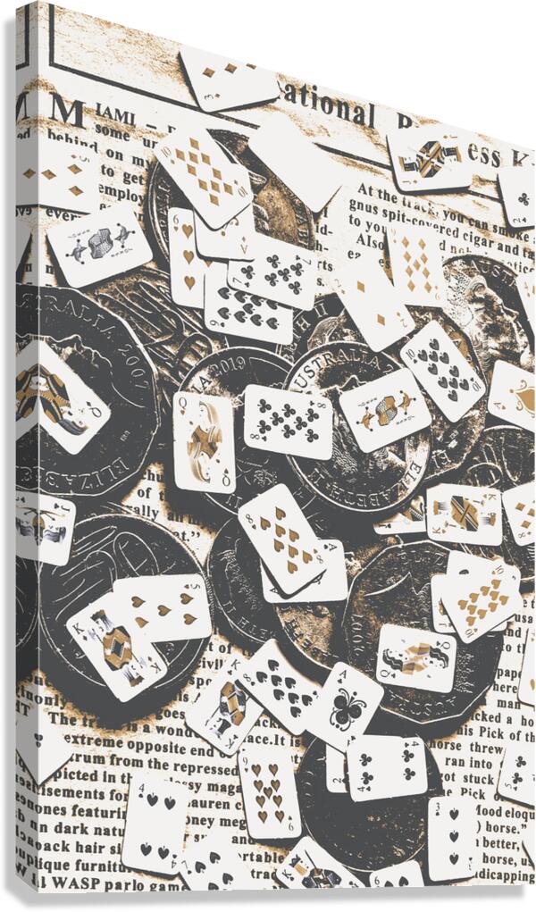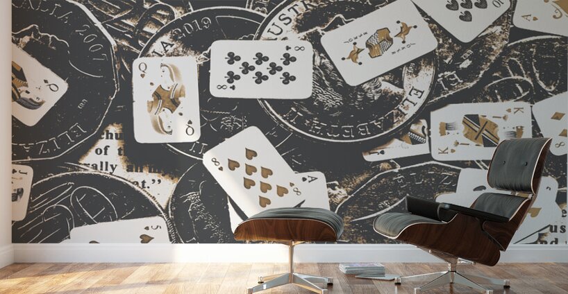 Poker game in a mix of Australian currency and playing cards in a tiny wager. Token luck