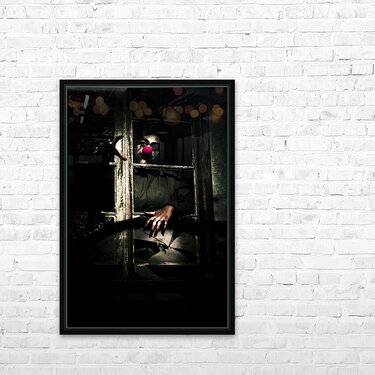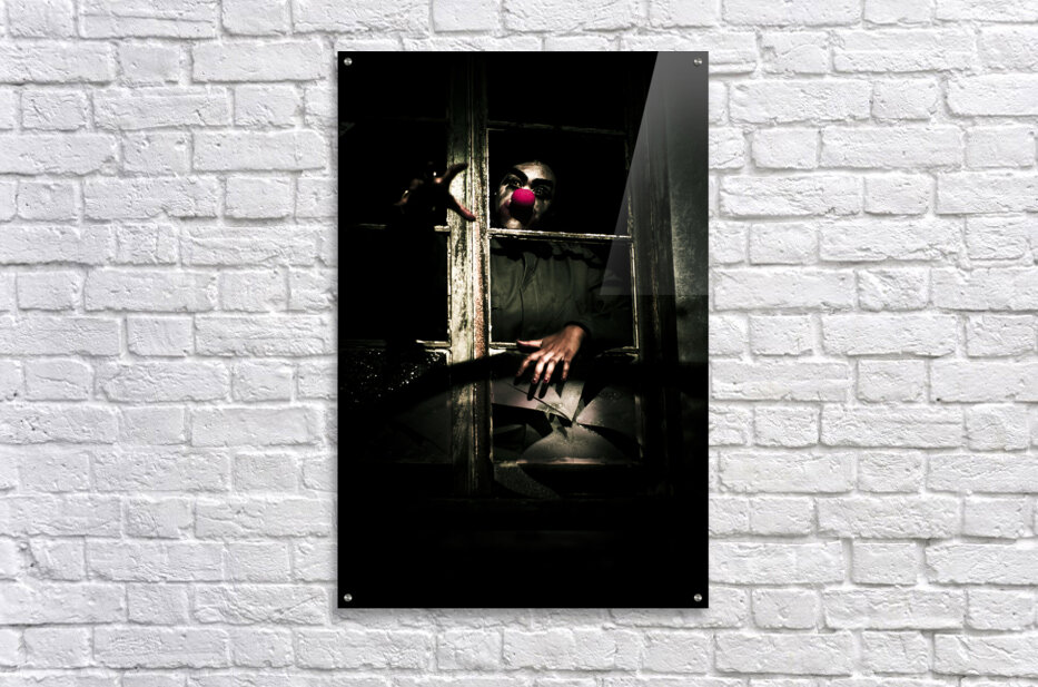 ABOUT THIS ARTWORK: SCARY CLOWN CLAWING WINDOW