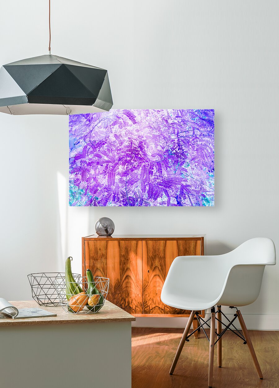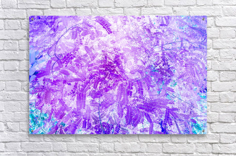 Modern visual art abstraction with fern fronds in contemporary blue and violet. Verola