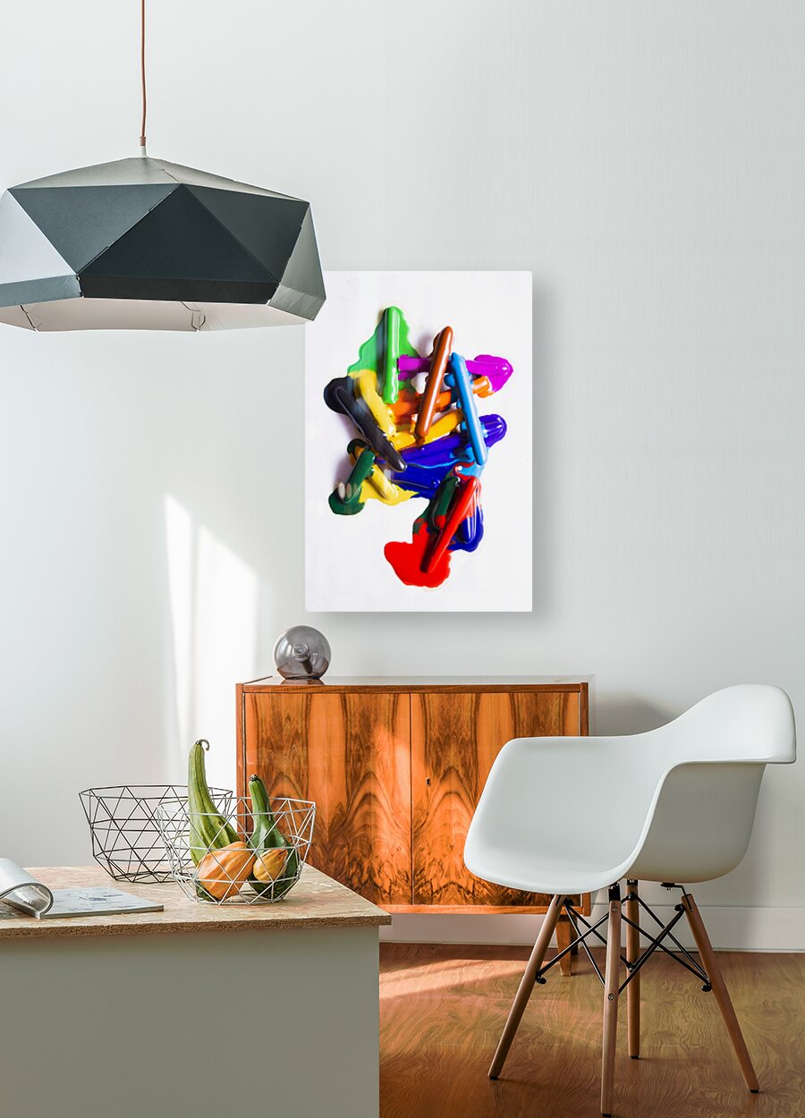 Creative fine art on a merger and colours and forms from the melting of crayons. Modern rainbow art