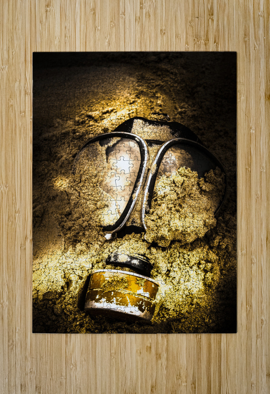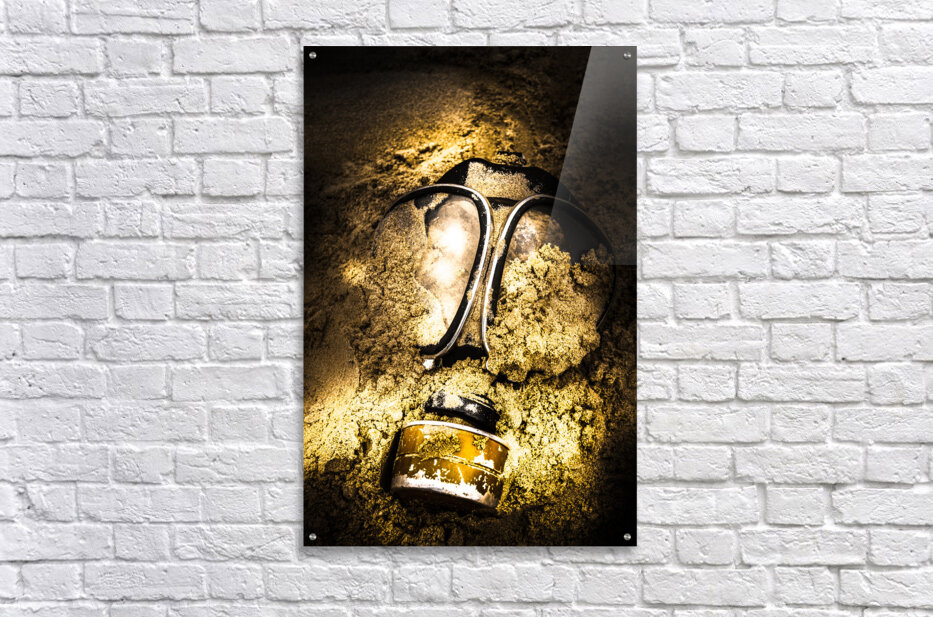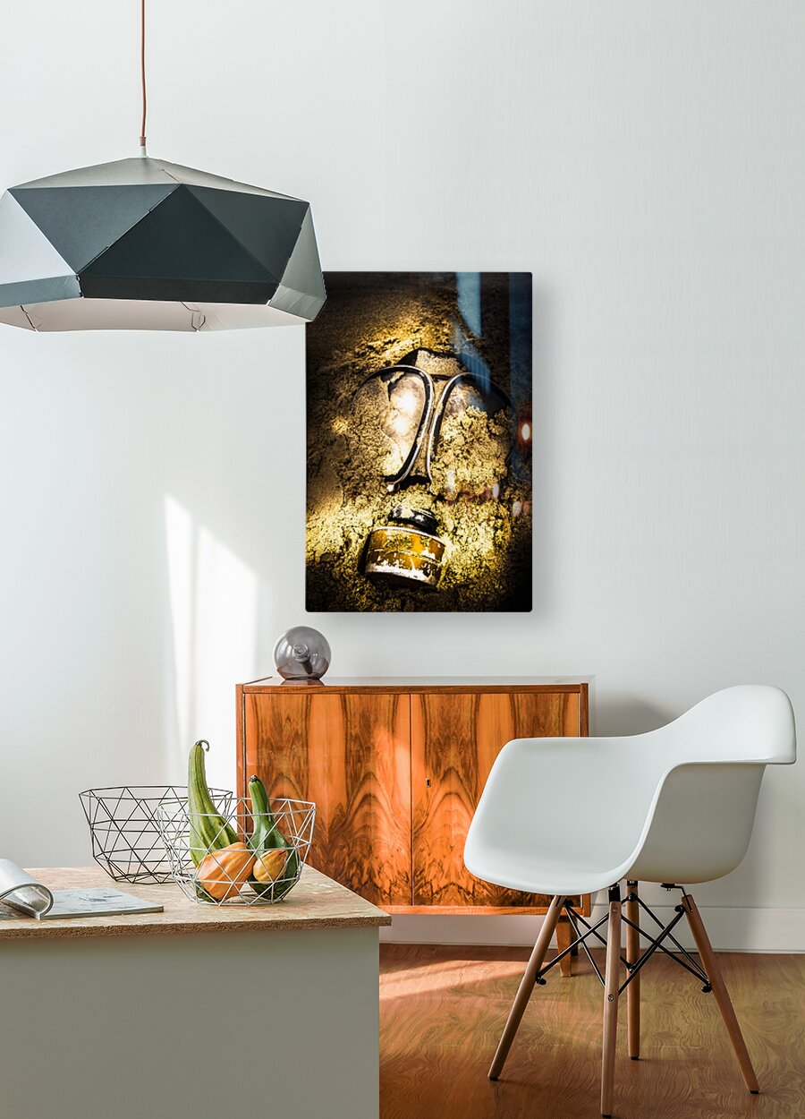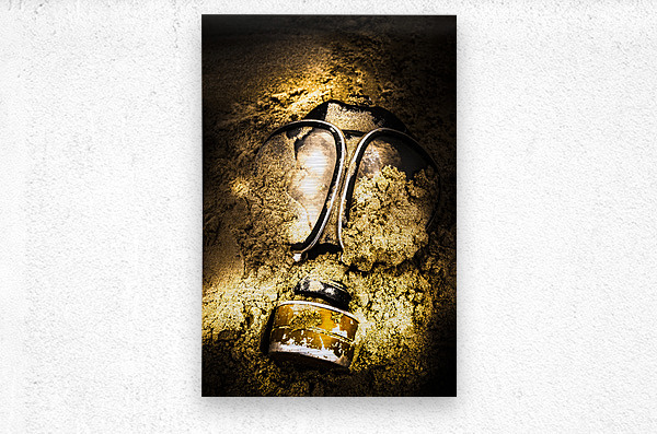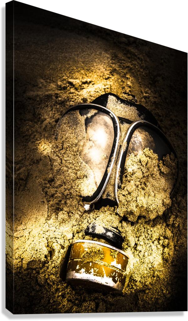 Dark eerie photo of a half buried gas mask in a shallow mass grave. Mass extinction event