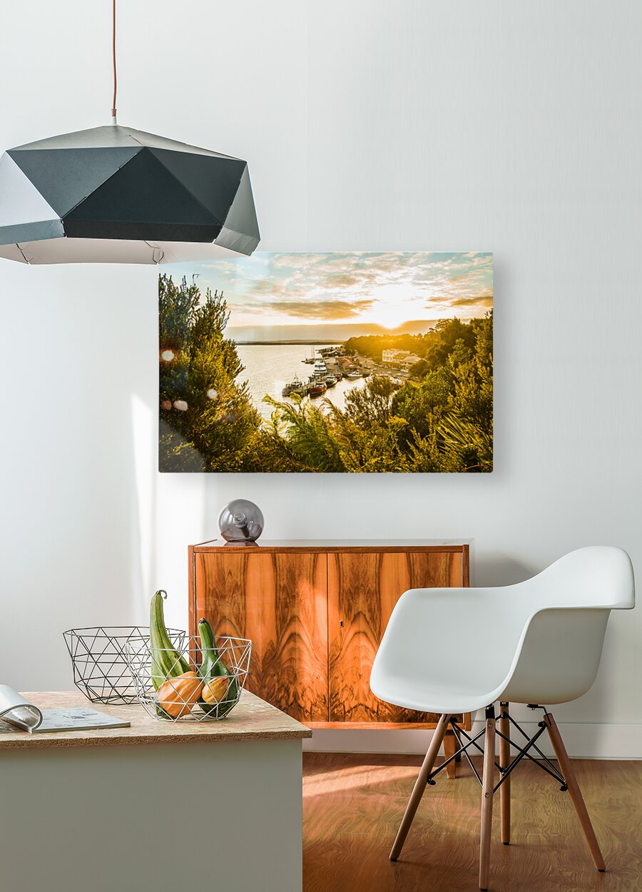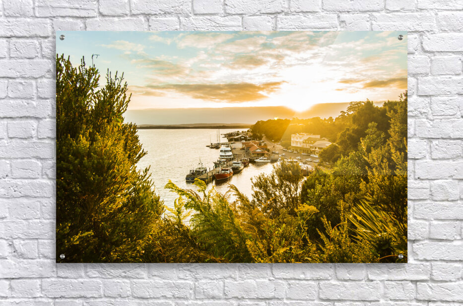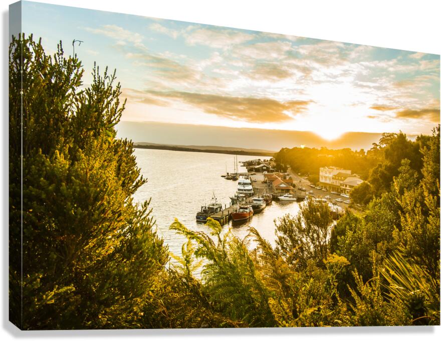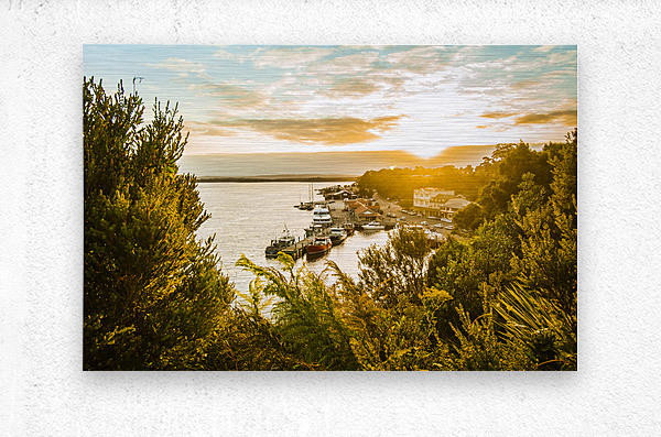 Peaceful fine art landscape on a clearing of colours in a vivid sundown over the amazing town of Strahan Tasmania Australia