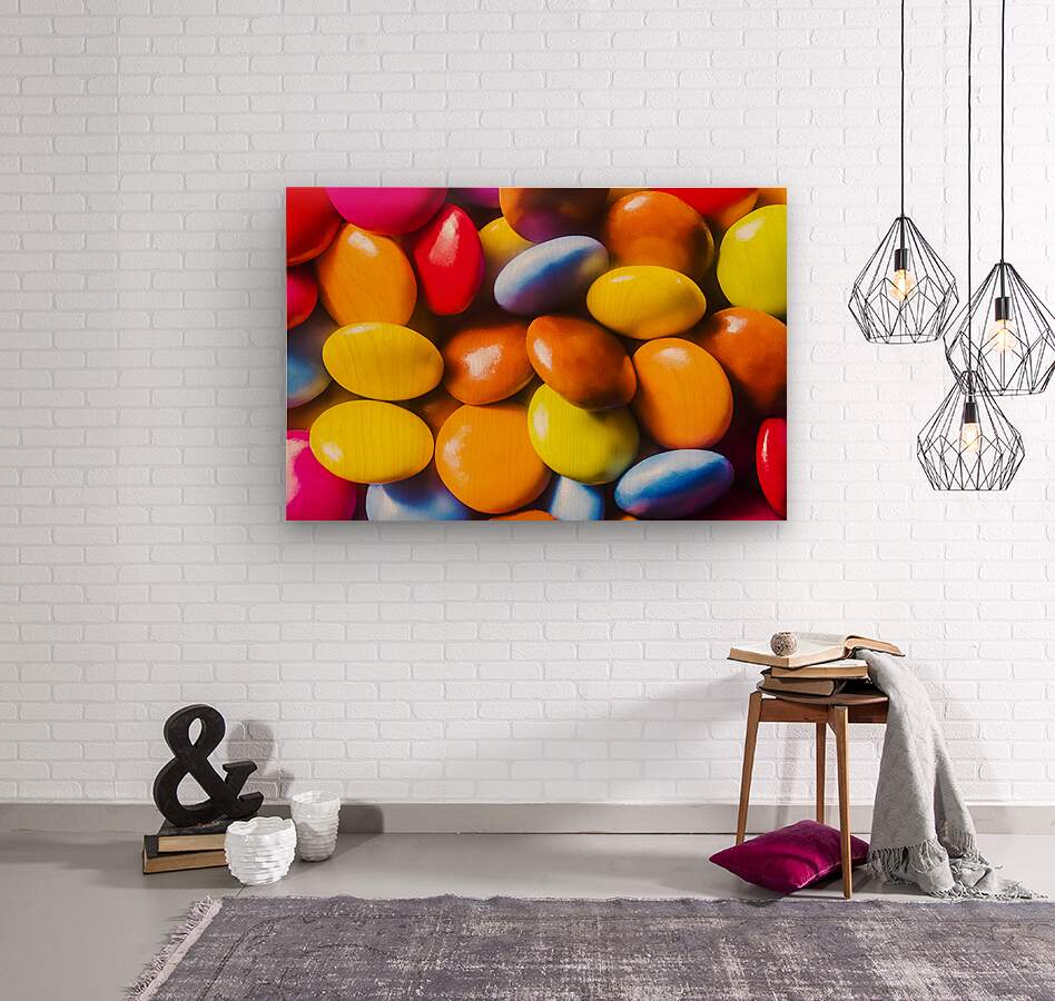 Colourful mix of candy coated confectionary in close festivity. Party Colours
