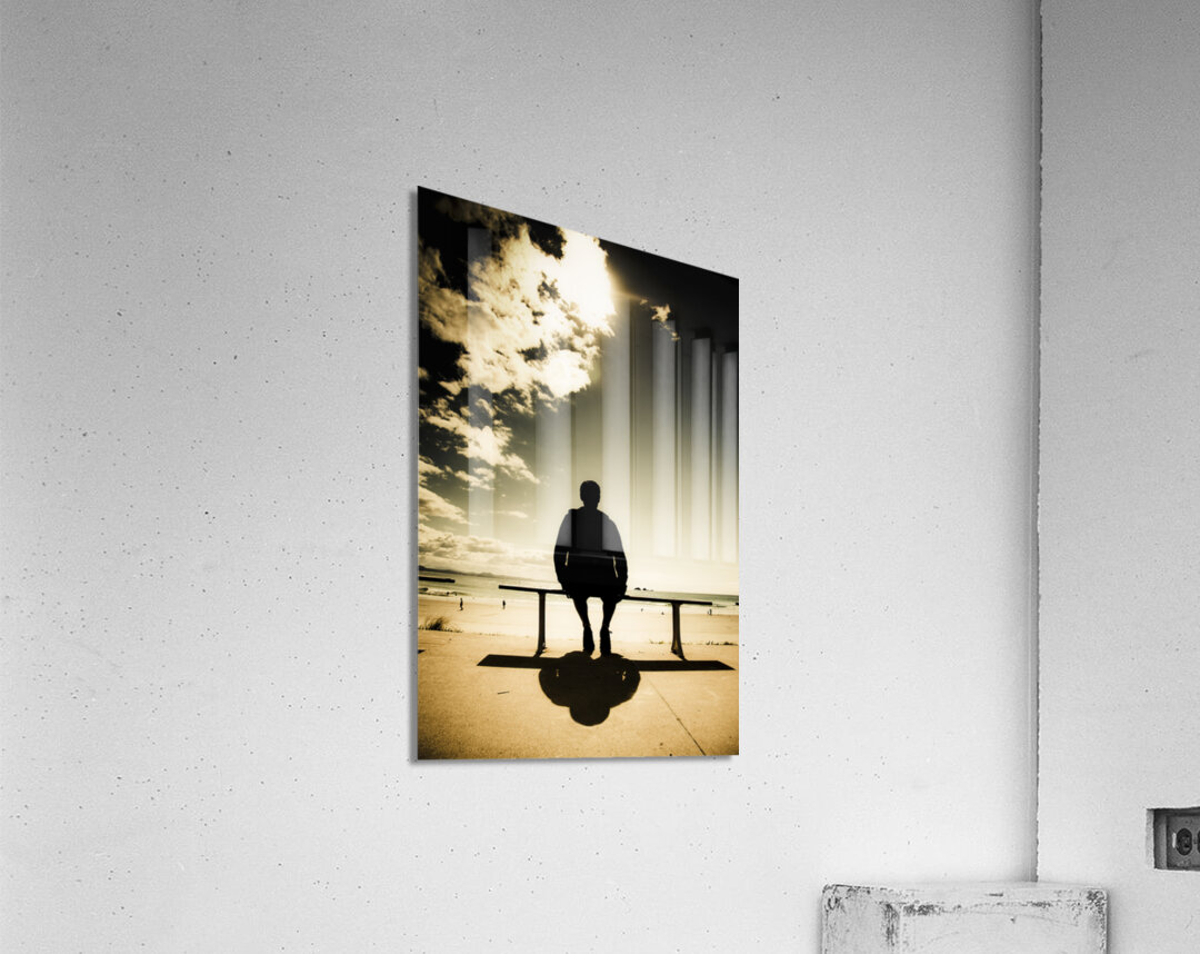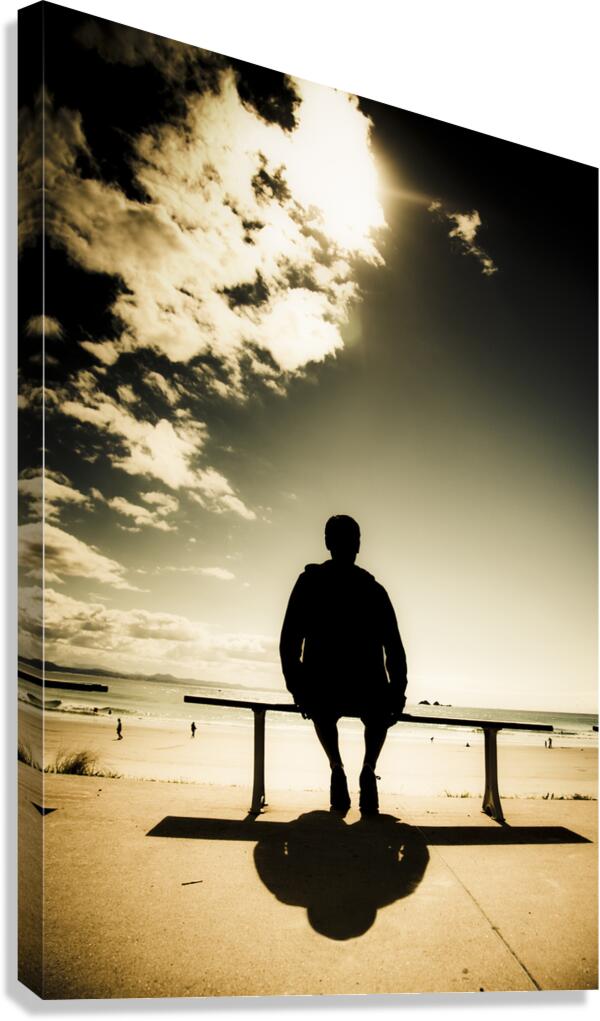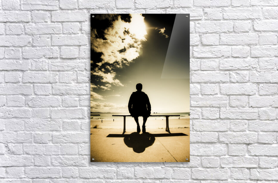 Creative Outdoor Photo Of A Young Man In Silhouette Sitting In The Sun On A Park Bench At A Australian Beach Photograph Taken Wategos Beach Byron Bay ...[+]