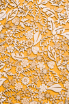 Background in modern ornamentation with leaves and garden flowers in exotic garden layout. Branch and blossom