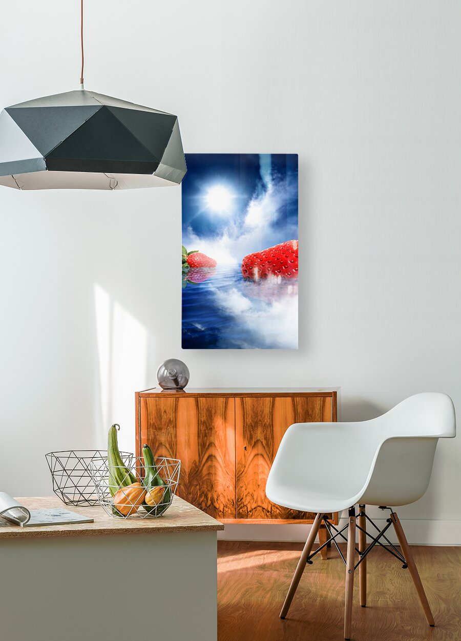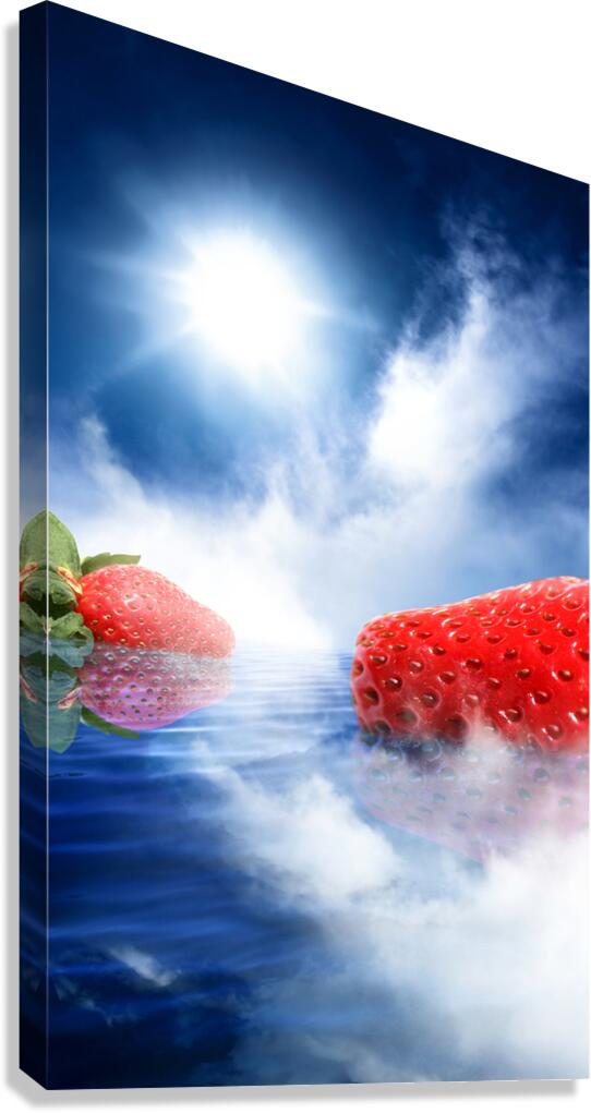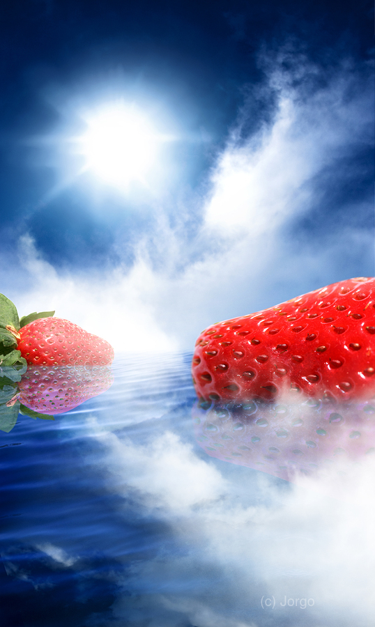 A sweet escape as strawberries go down a stream of surrealist flow odd it is that they came to be mystifying as the dirt from where they seed.