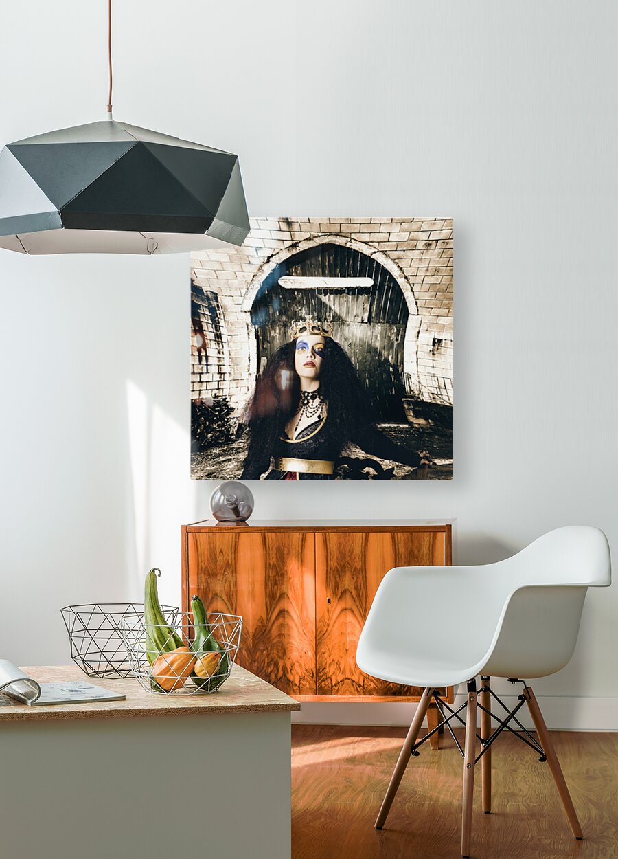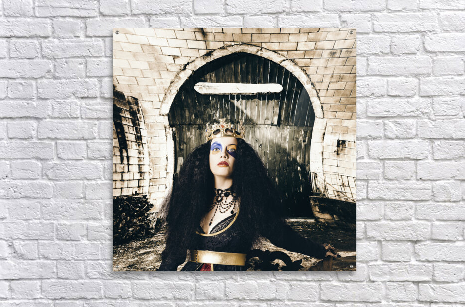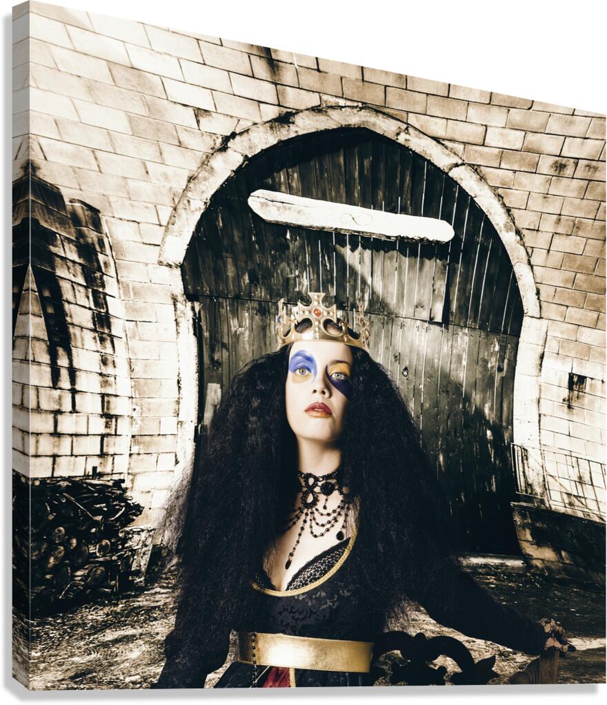 Get this artwork "Fashion beauty princess sitting by castle door" in a framed print.