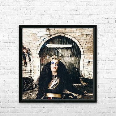 Fashion beauty princess sitting by castle door Frame print