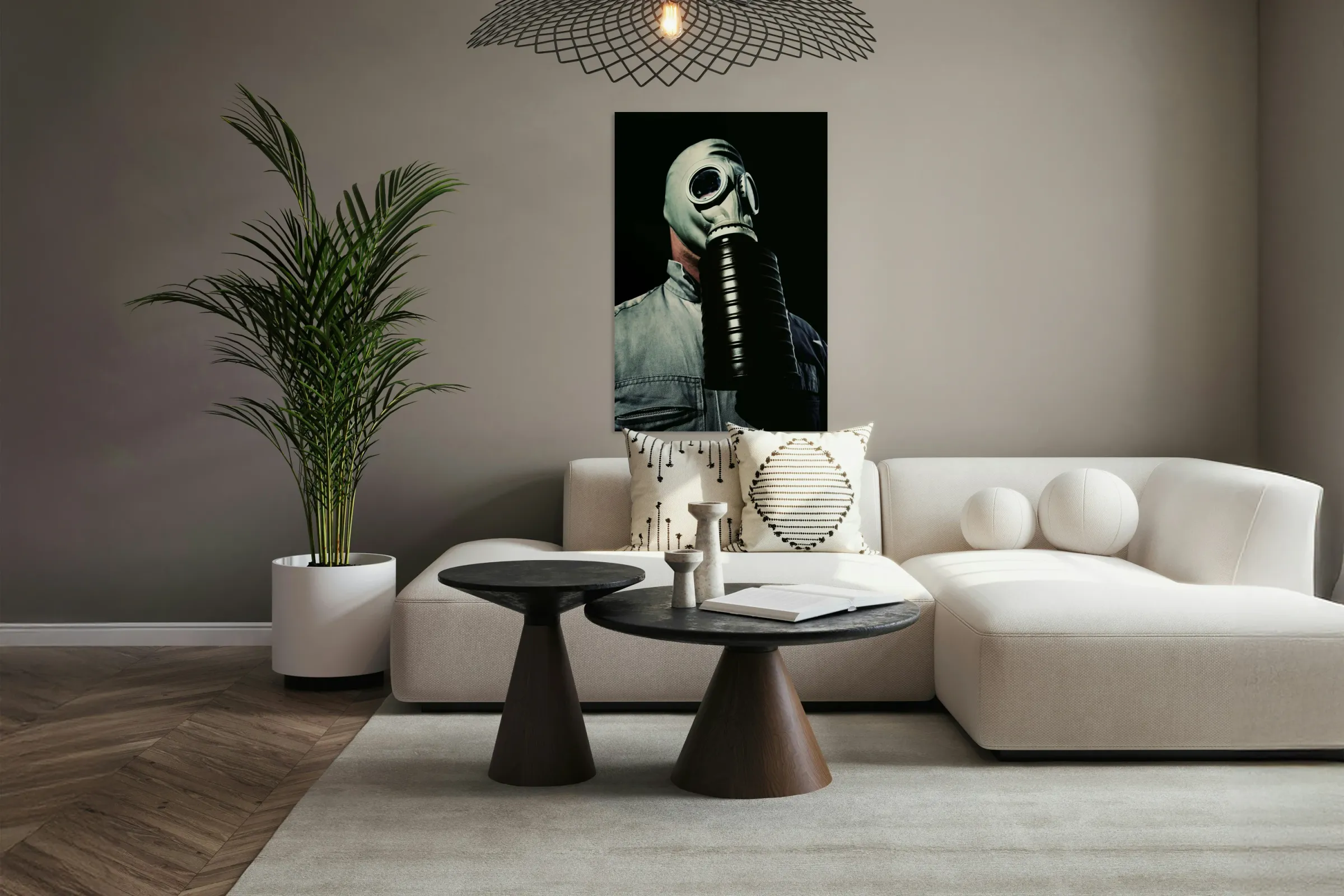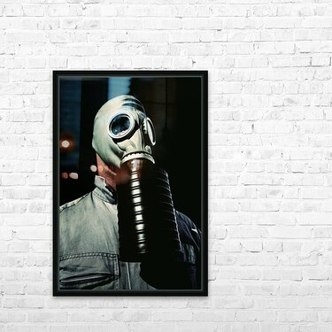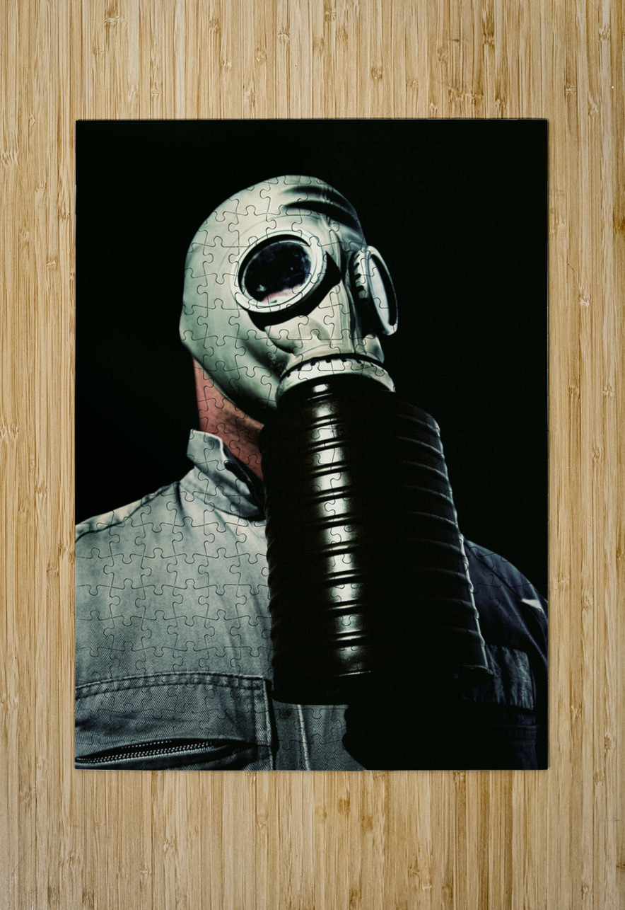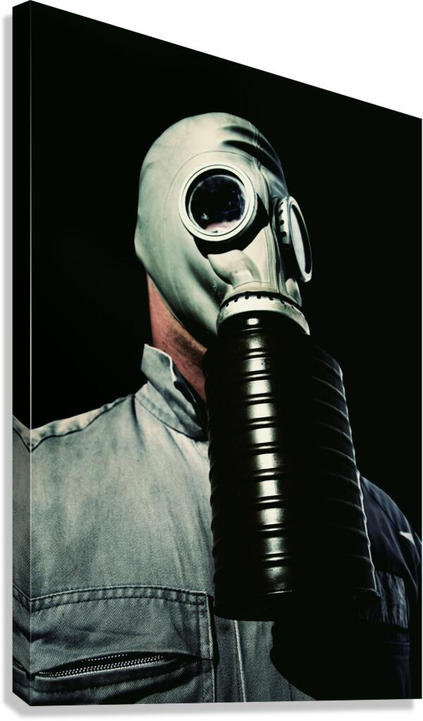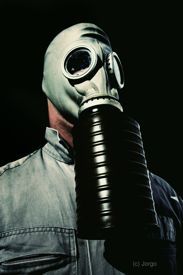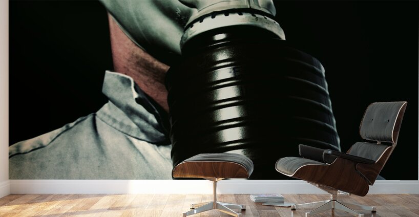 A Masked Soldier Stares Fearlessly Into Darkness Fully Prepared For The Hazardous Gas Onslaught