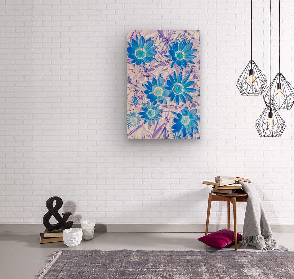 Abstract wild flower art on a creative floral design of gazania flowers in cool blue and purple