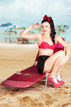 SEXY BEACH PIN UP GIRL WEARING HIGH HEELS