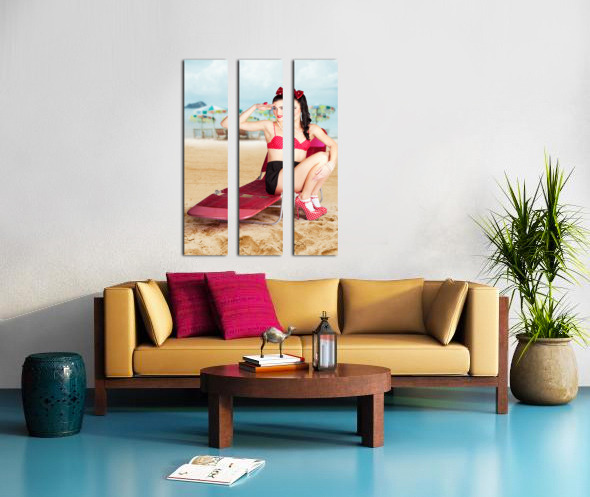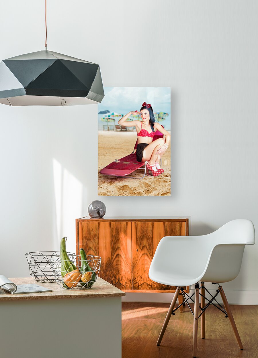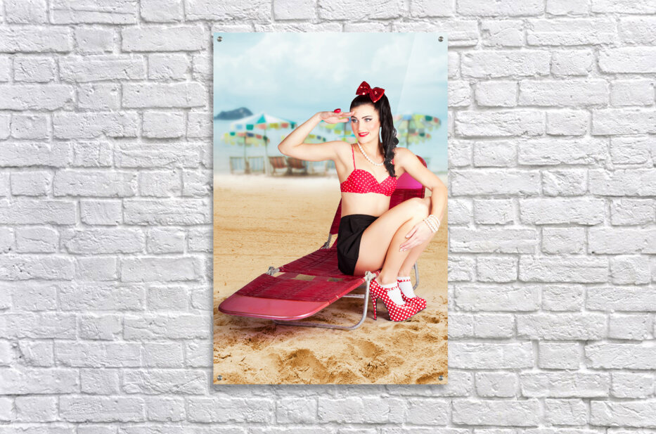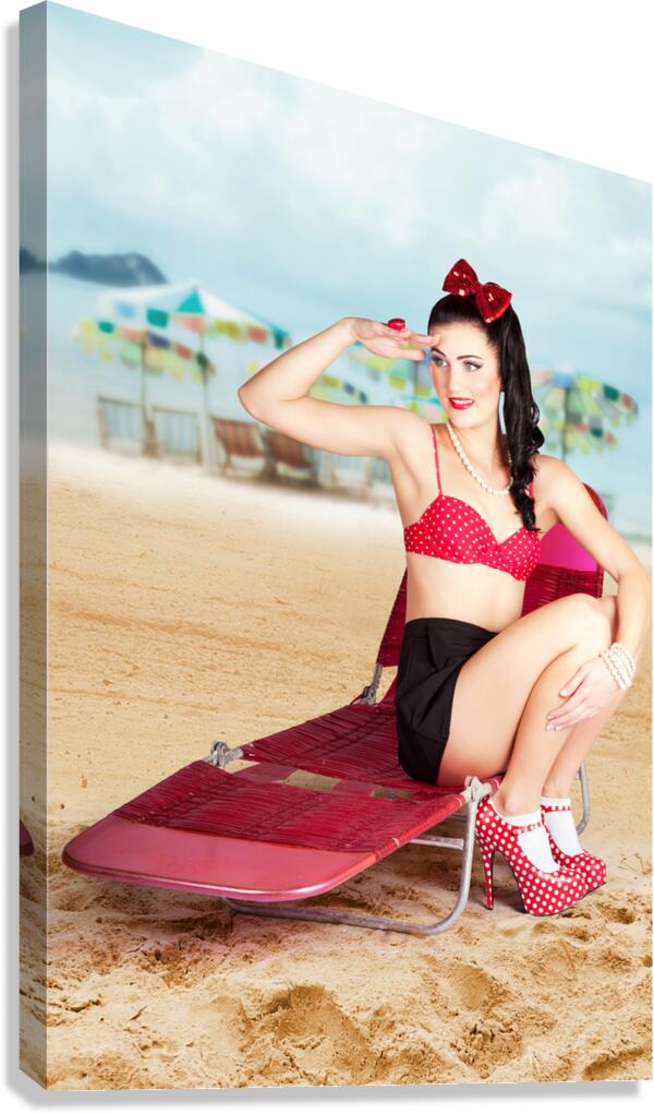 ABOUT THIS ARTWORK: SEXY BEACH PIN UP GIRL WEARING HIGH HEELS