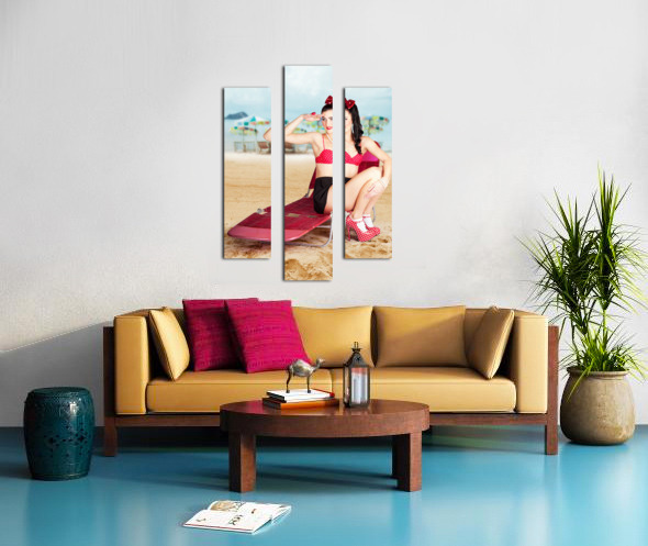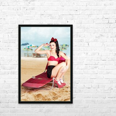 Sexy beach pin up girl wearing high heels Frame print