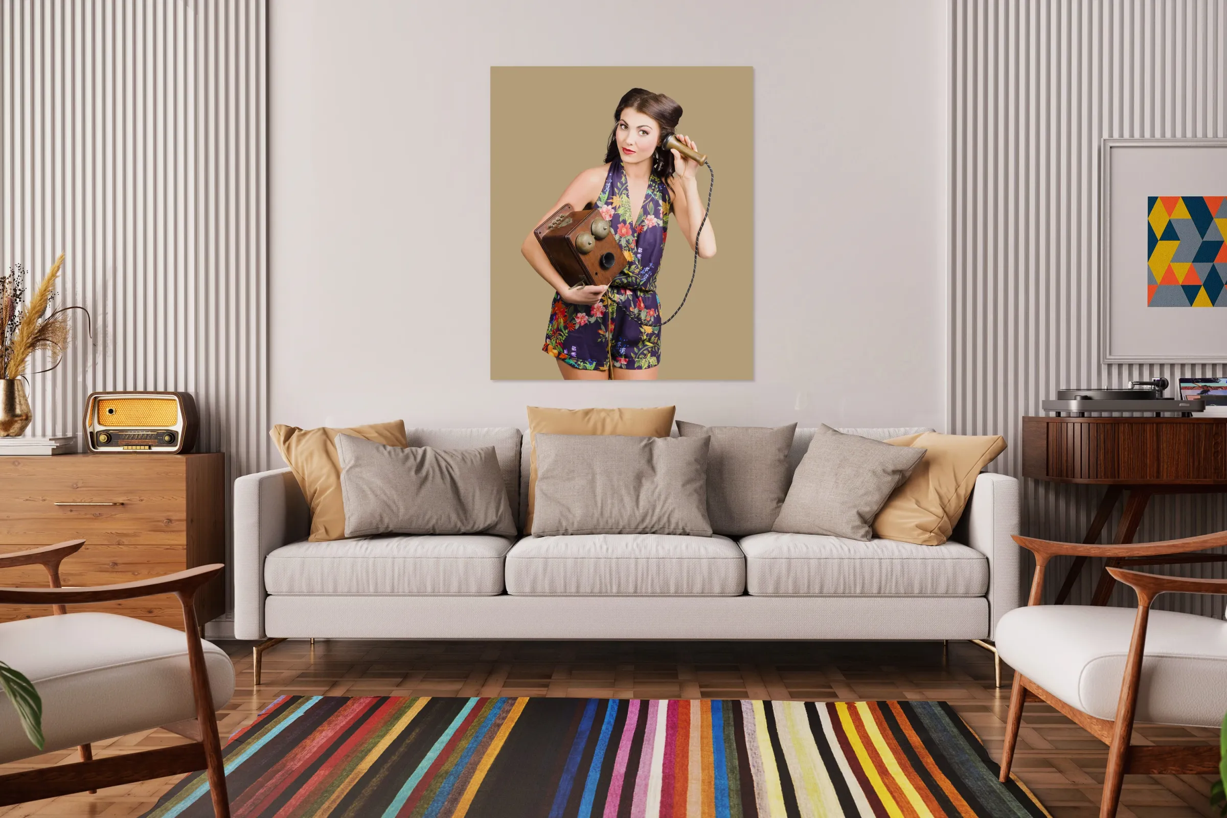 ABOUT THIS ARTWORK: RETRO RECEPTIONIST ON VINTAGE TELEPHONE. CALL US