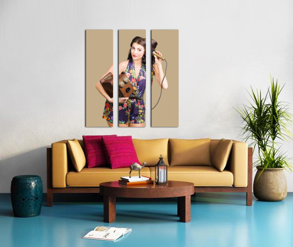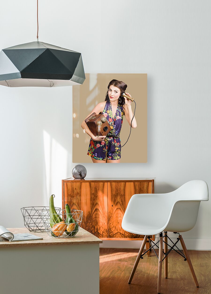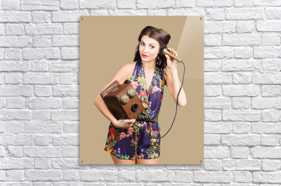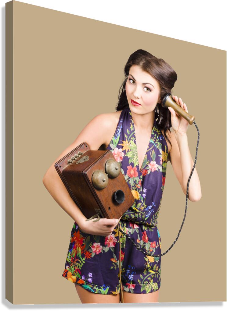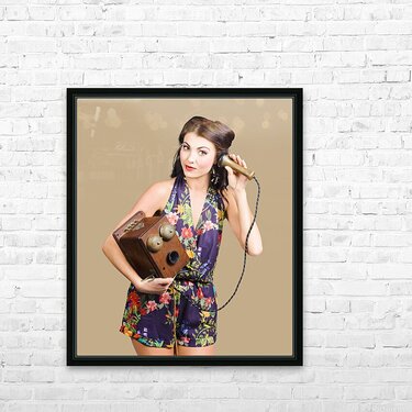 Retro receptionist on vintage telephone. Call us Picture Frame Printing