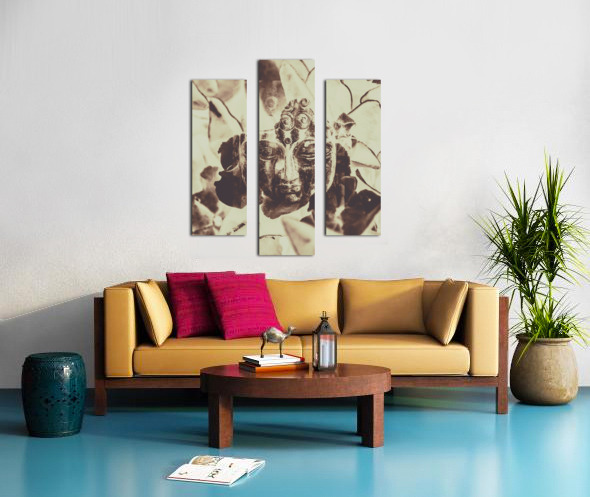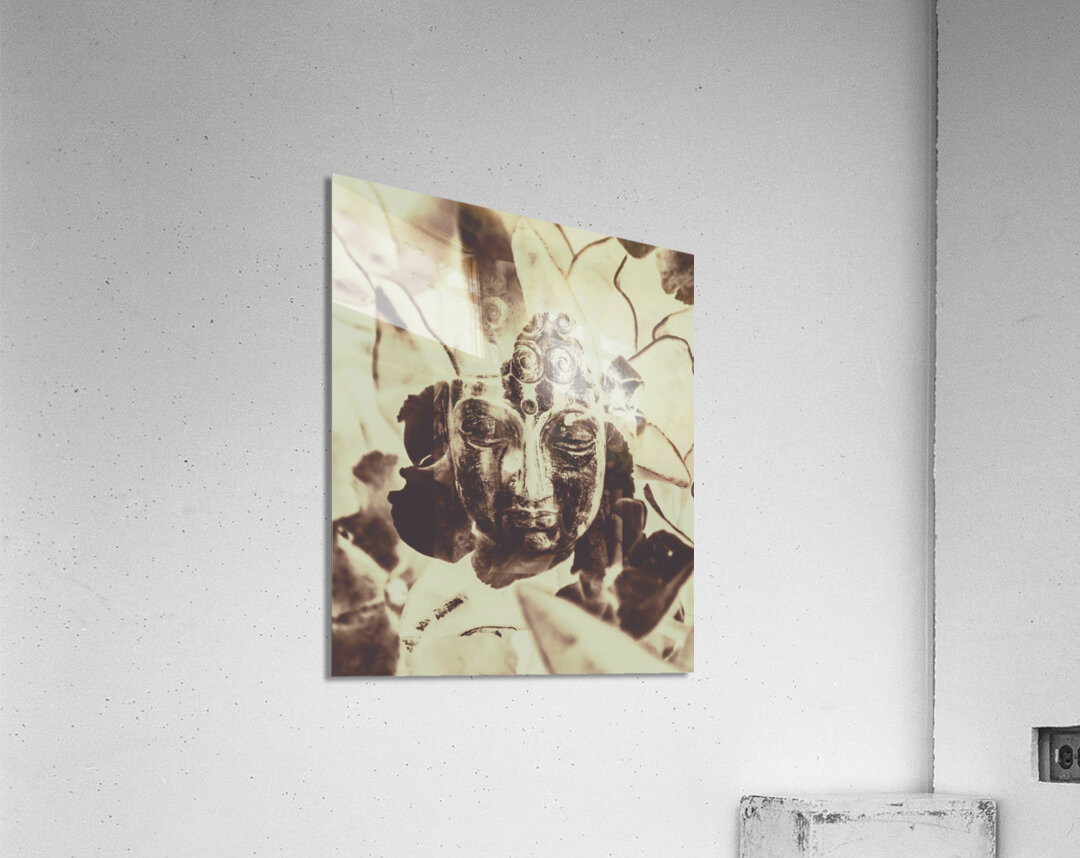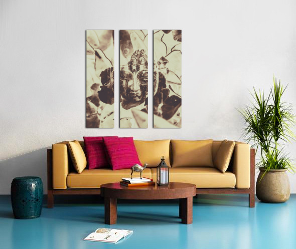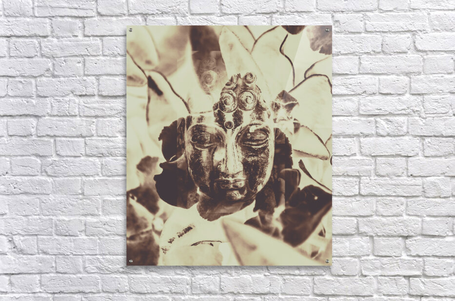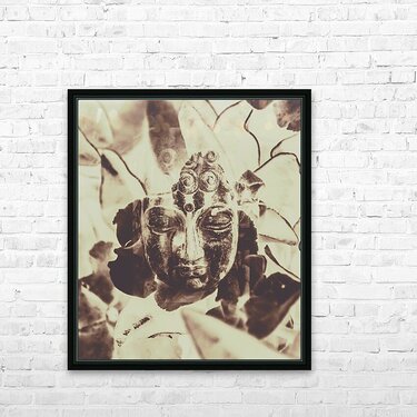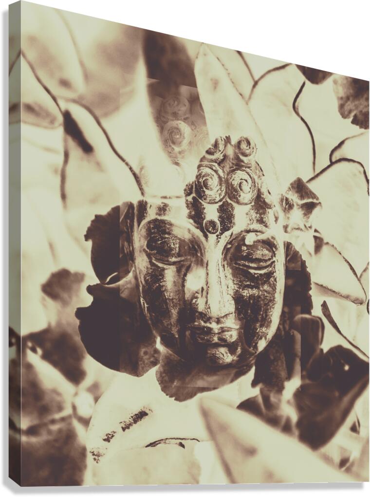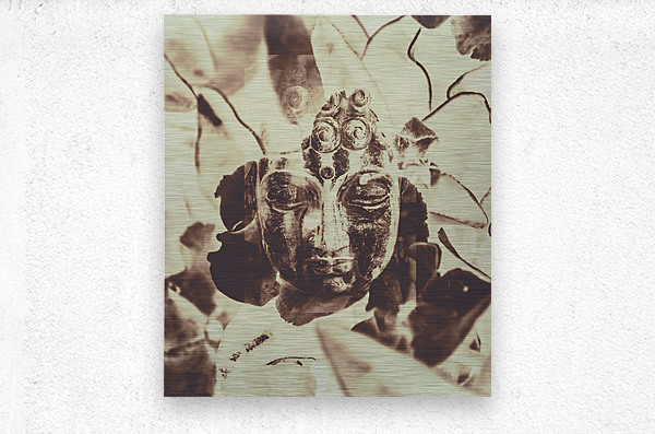 Eastern style Asian art on an abstraction of Buddha faces and flowery zen overlaid as one