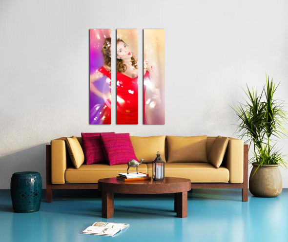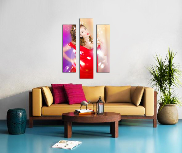 ABOUT THIS ARTWORK: BEAUTIFUL PIN-UP GIRL AT RETRO DISCO DANCE PARTY