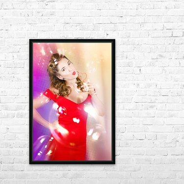 Beautiful pin-up girl at retro disco dance party Picture Frame Printing