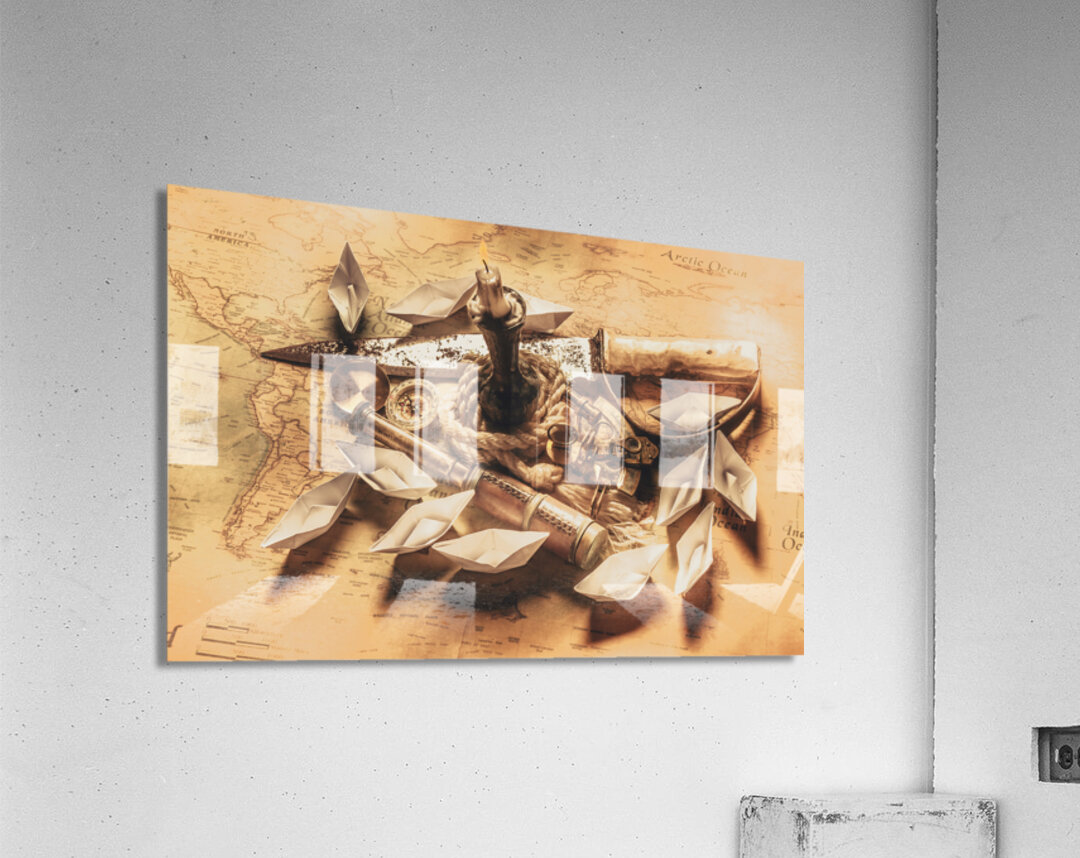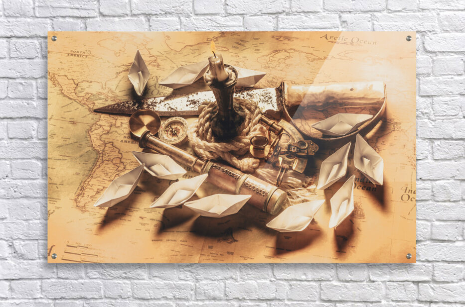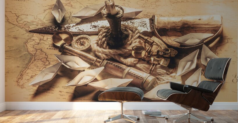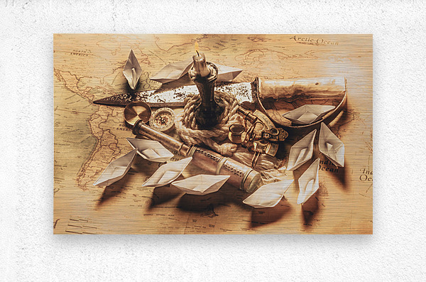 Golden scene in nautical adventure with bronze navigation equipment leading a quest in seafaring stories