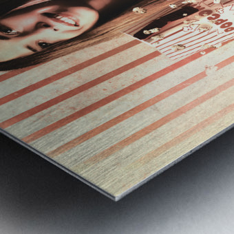 Vintage cinema girl with movie popcorn. Retro film Wood print