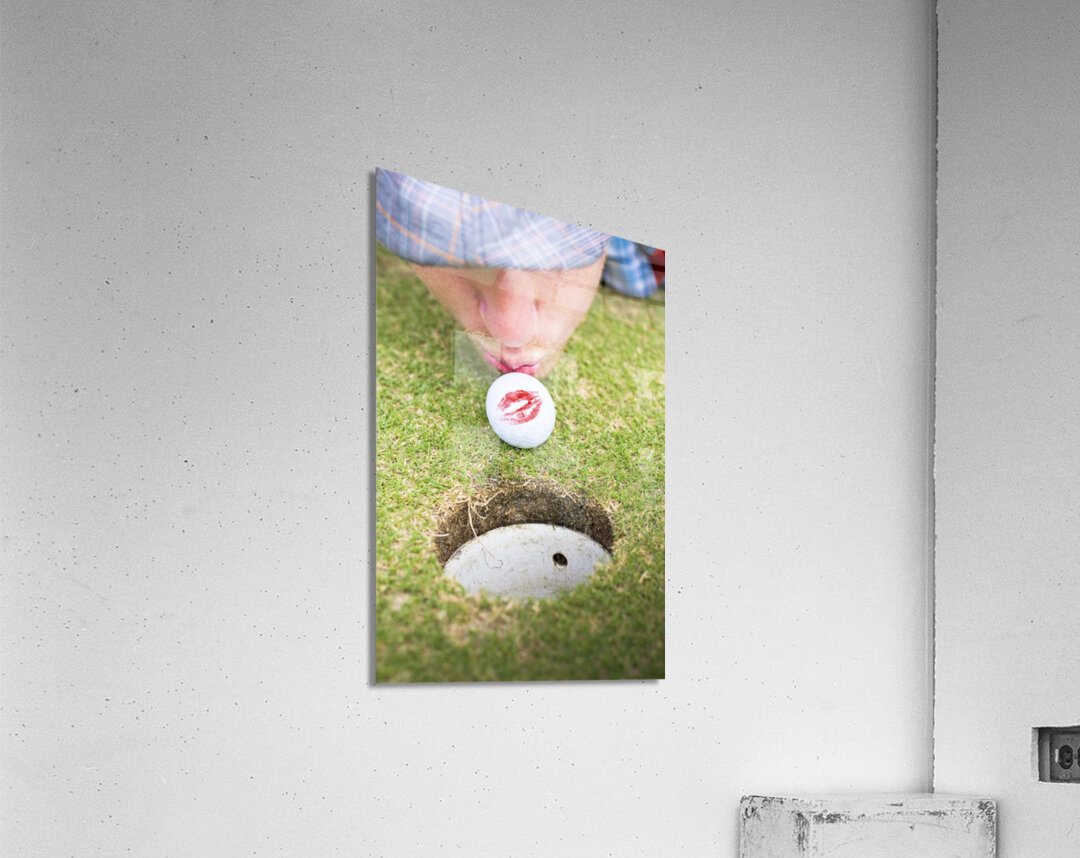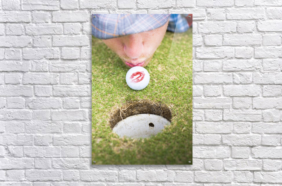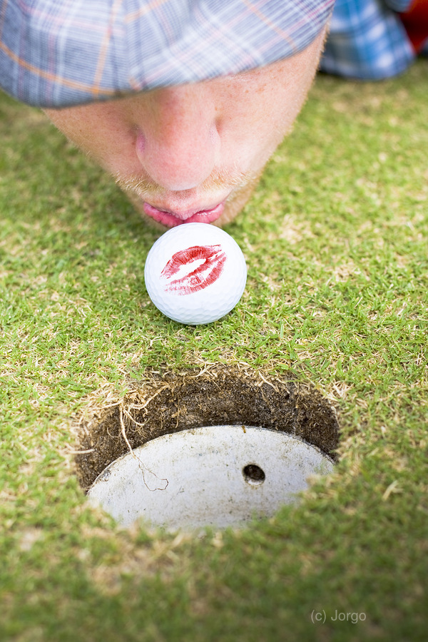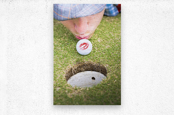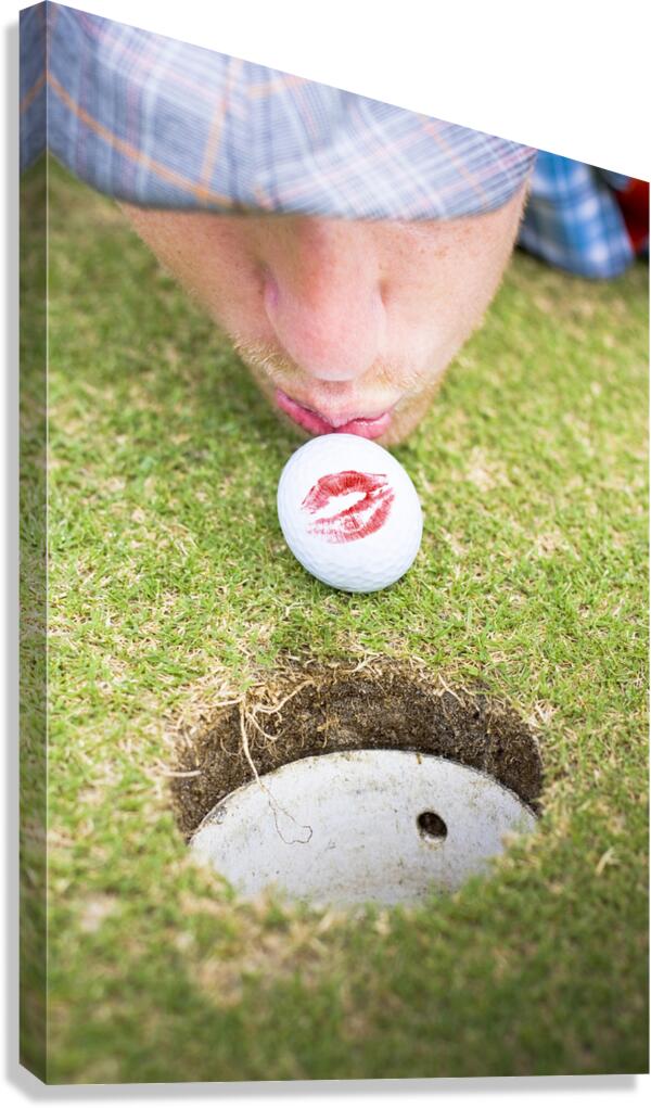 A Man In Love With Golf Kisses His Ball On A Golfing Green To Wish It Luck Before He Putts It Into The Hole In A Golf Love At First Flight Concept