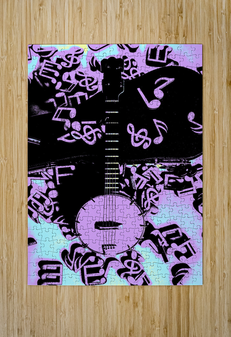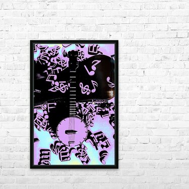 Posterized pop art music in western harmonics with banjo guitar and a colourised notation