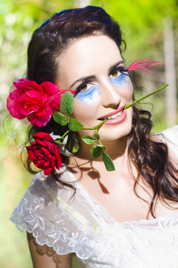 Red Roses Woman Holds A Beautiful Red Rose In Her Mouth In A Romantic Valentines Day Gift Of Love