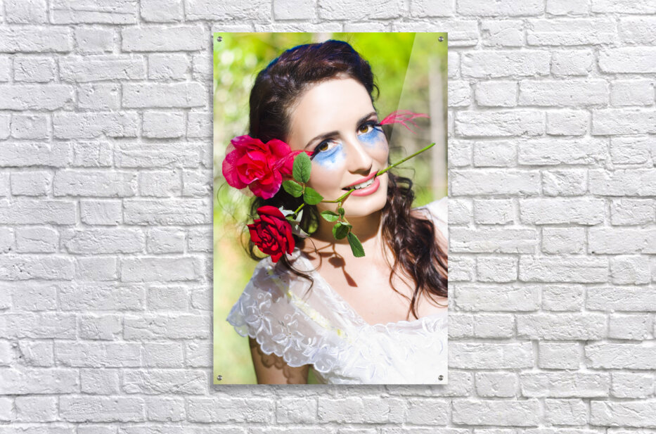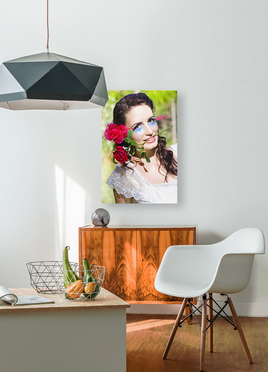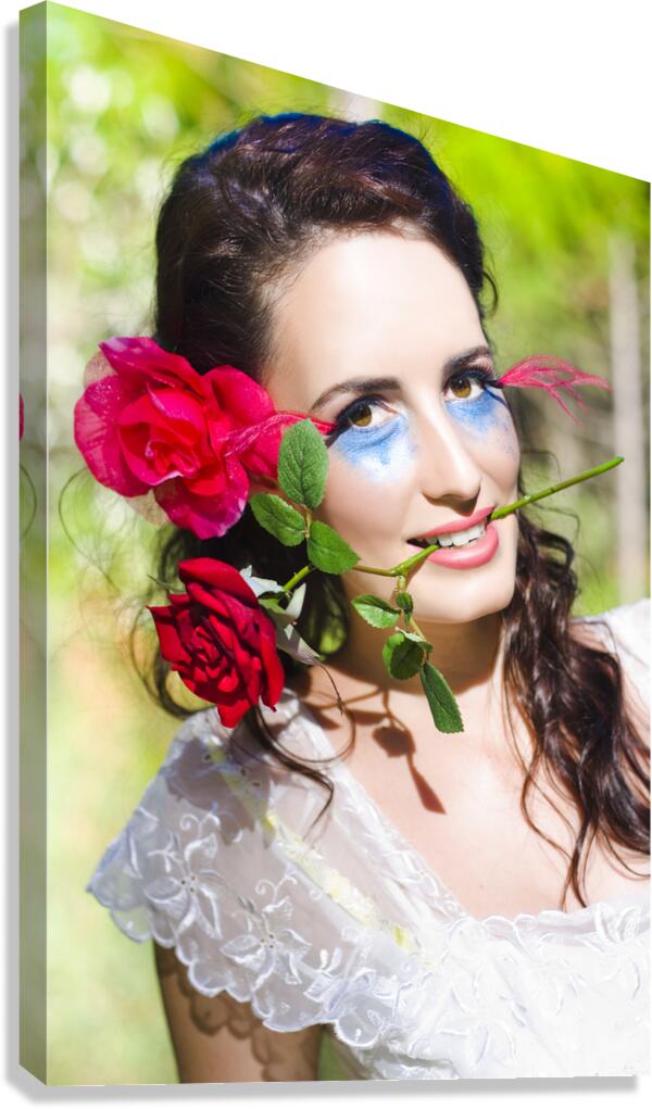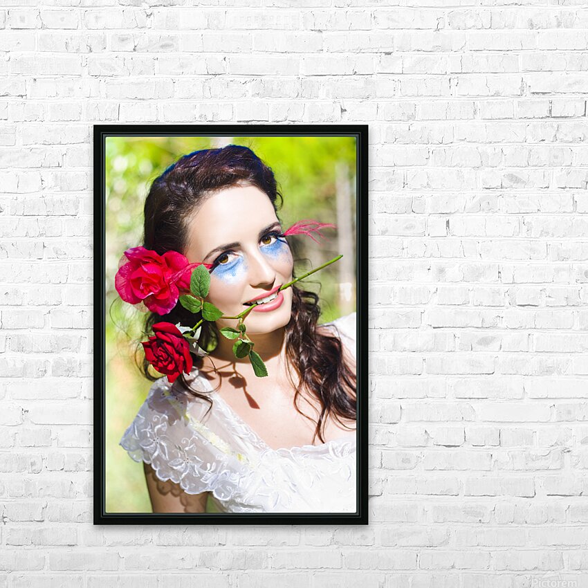 Woman With Red Roses Picture Frame Printing